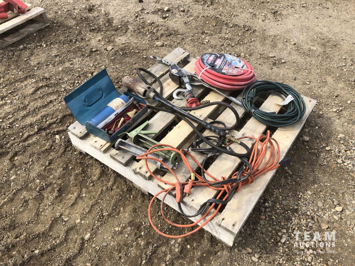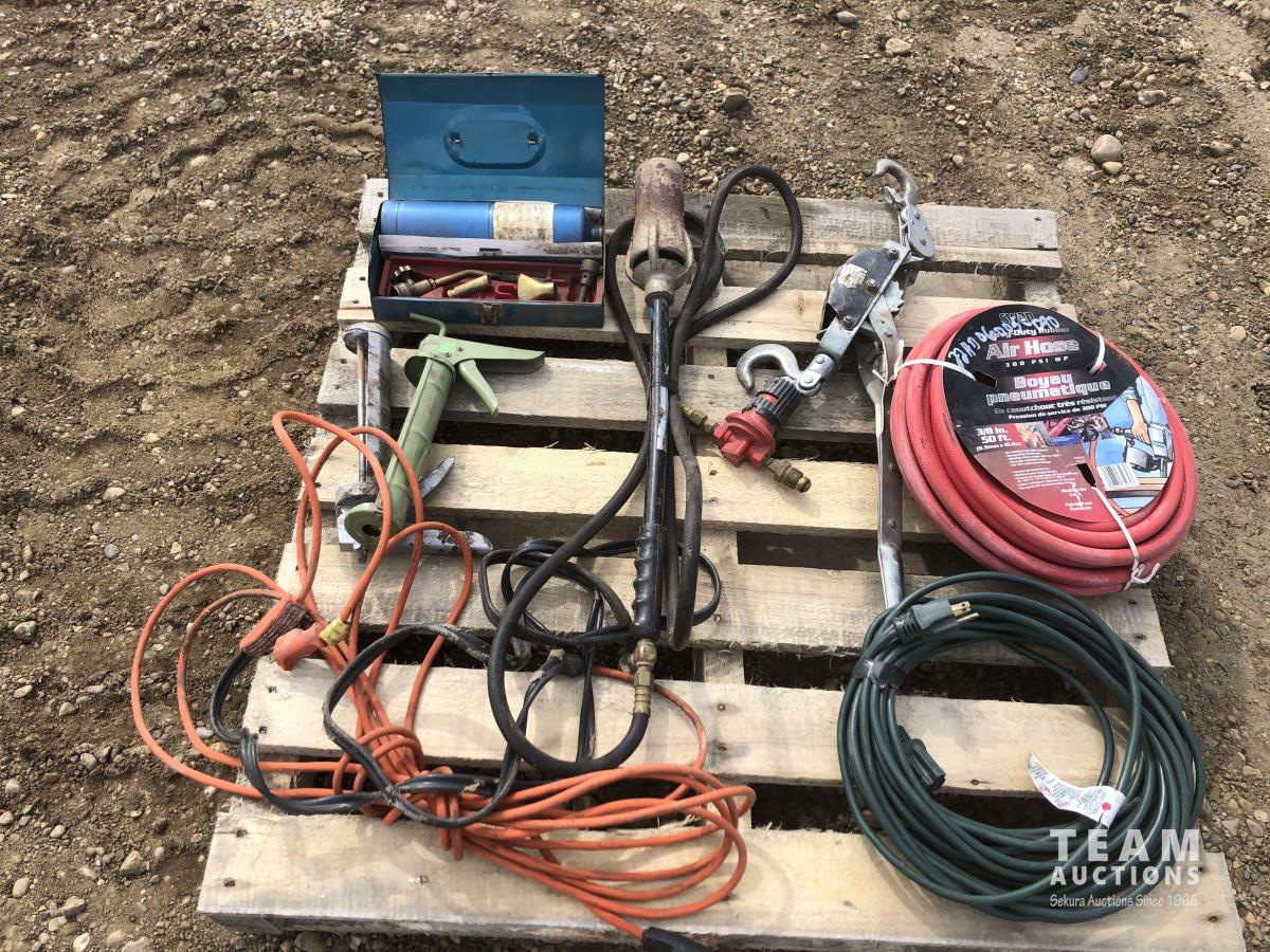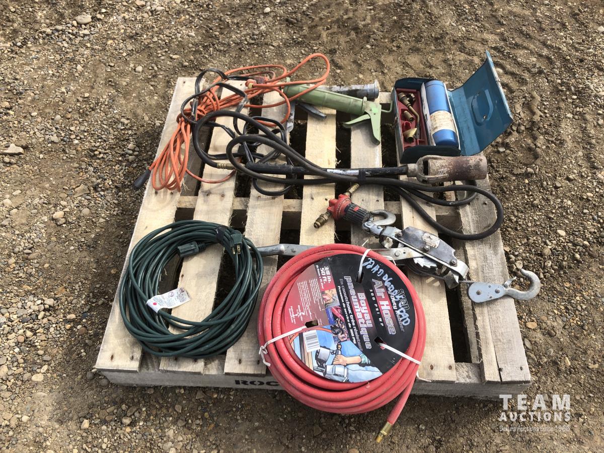 propane torch kit, extension cords, air hose, tiger torch, come along