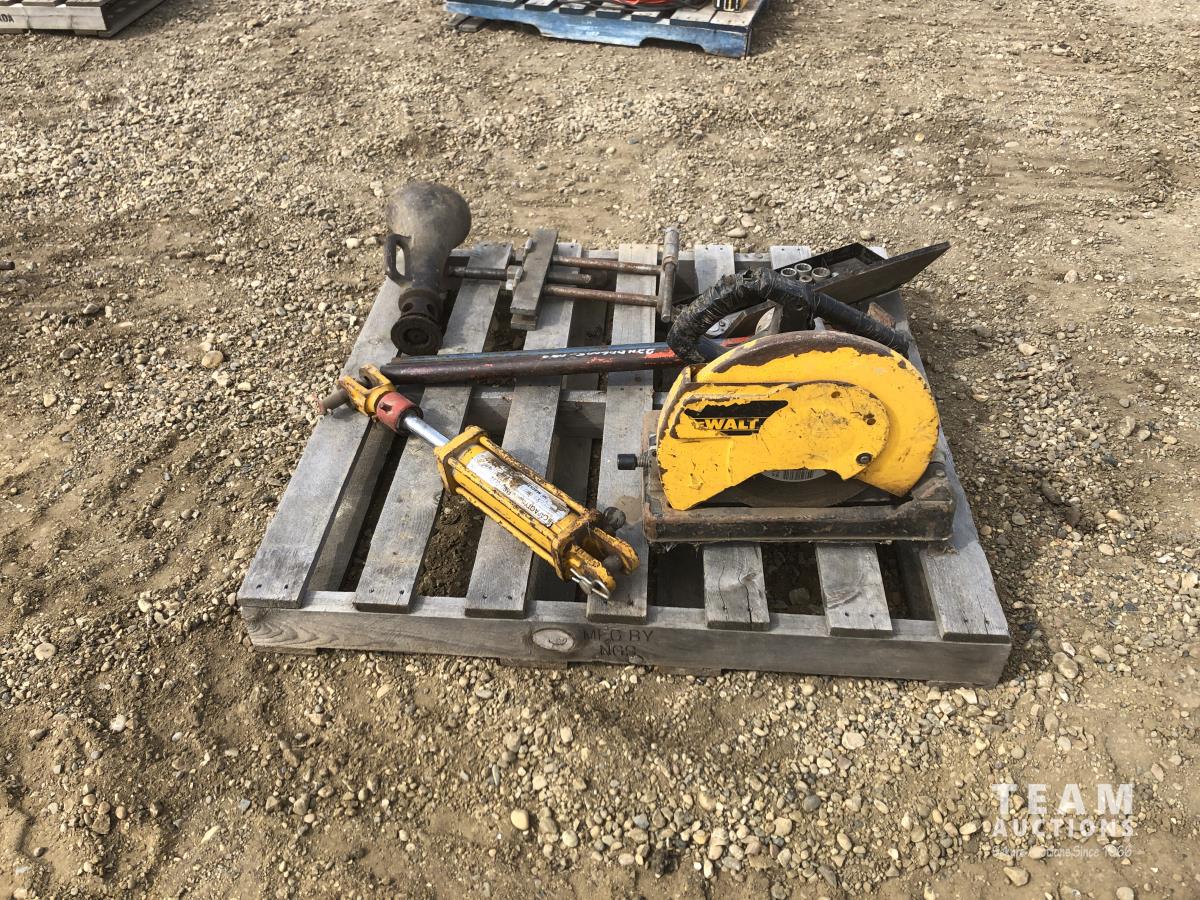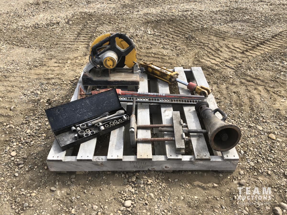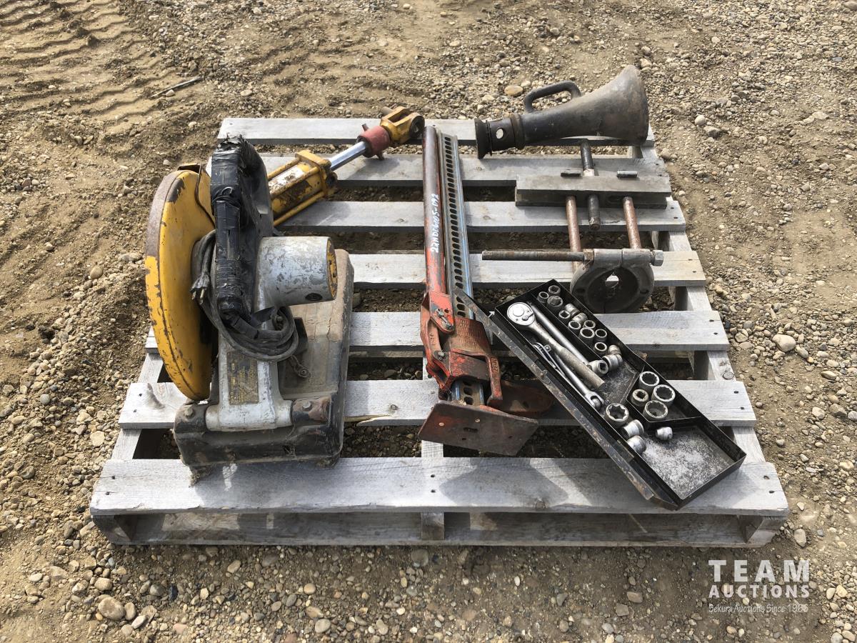 bumper jack, floor jack, hydraulic ram, DeWalt cut off saw, socket set