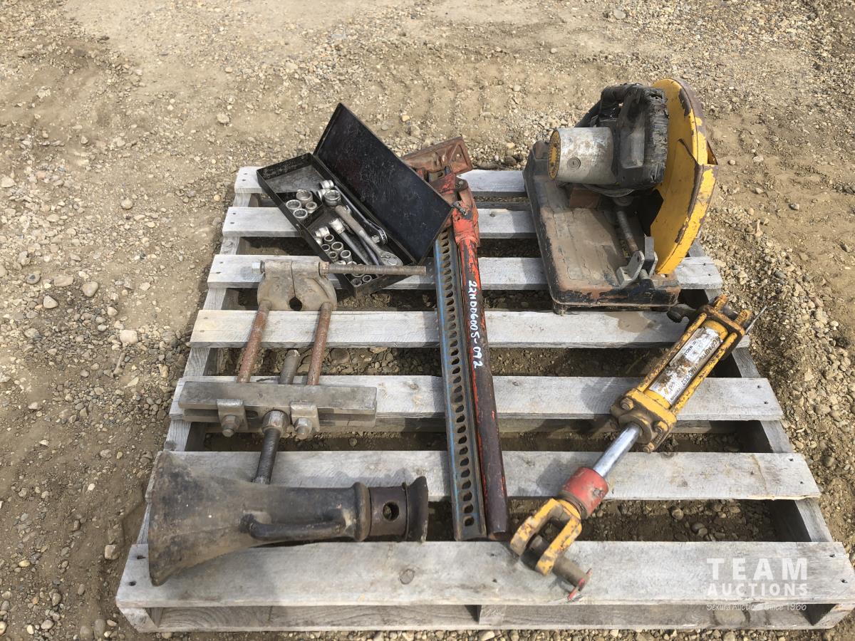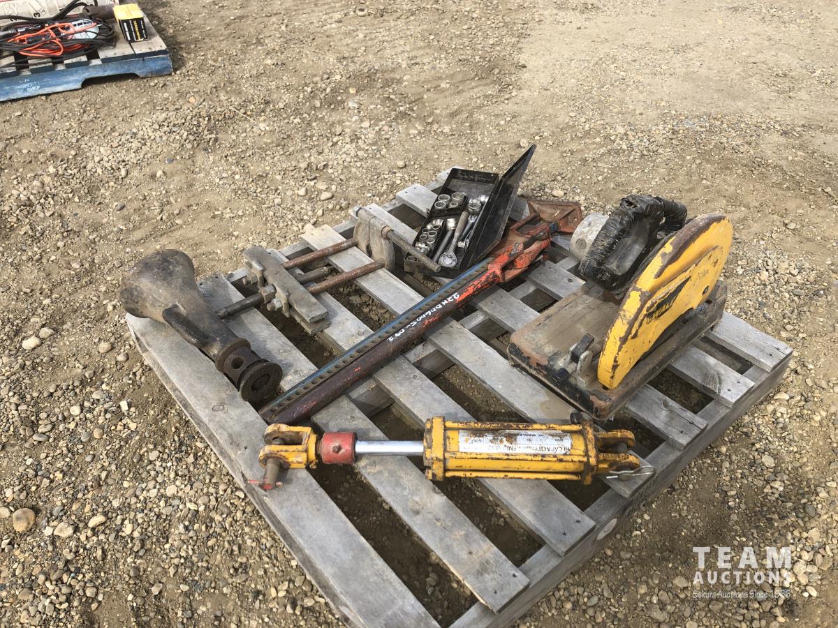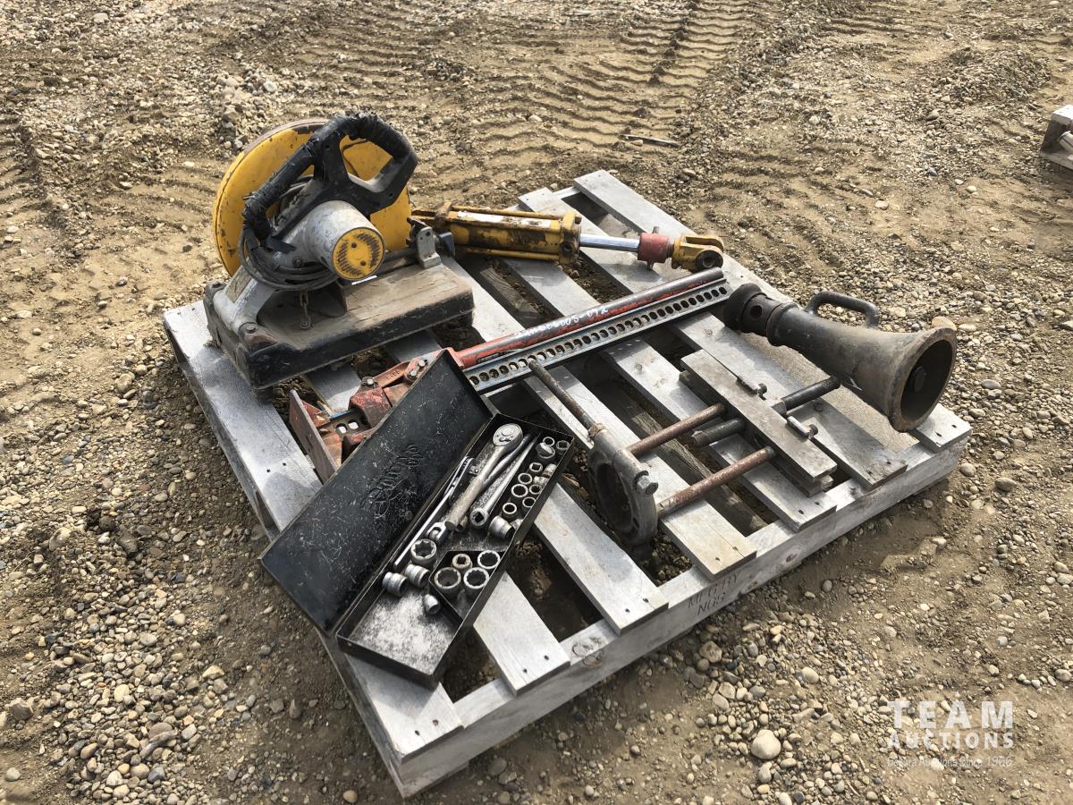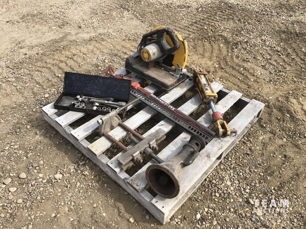 bumper jack, floor jack, hydraulic ram, DeWalt cut off saw, socket set