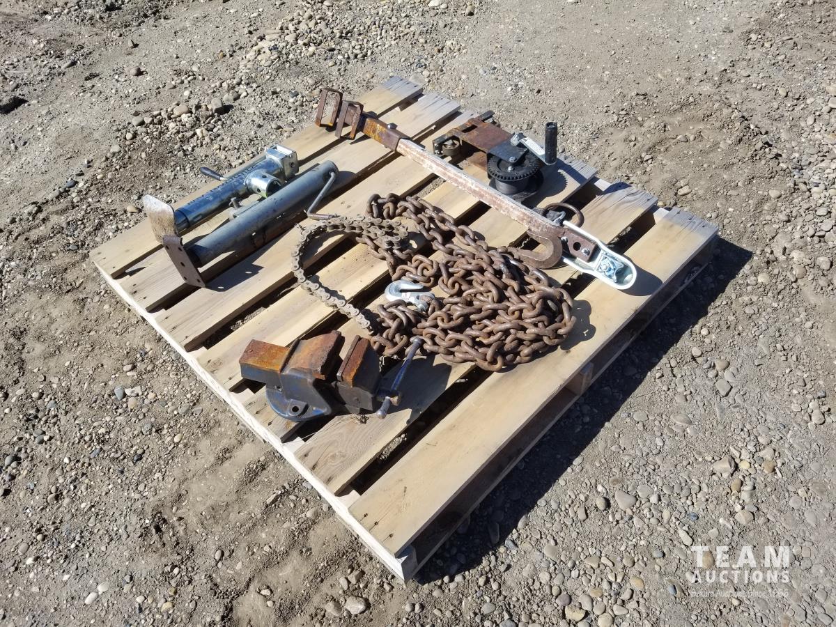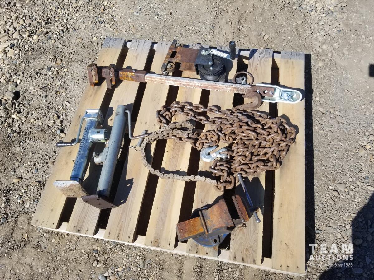54 Miscellaneous Chains, Trailer Jacks, Hitches & Bench Vise