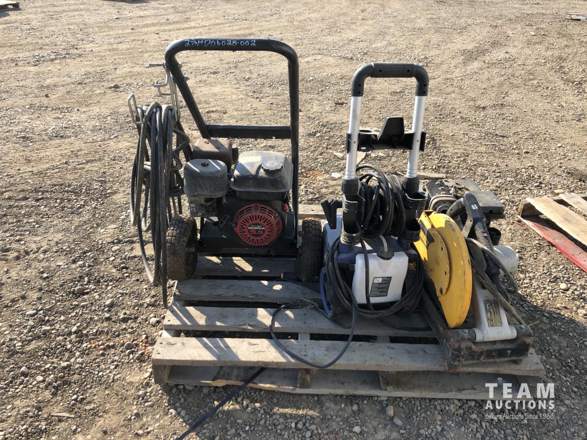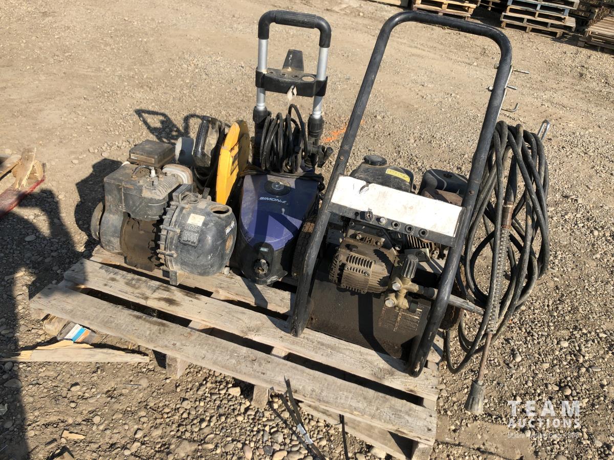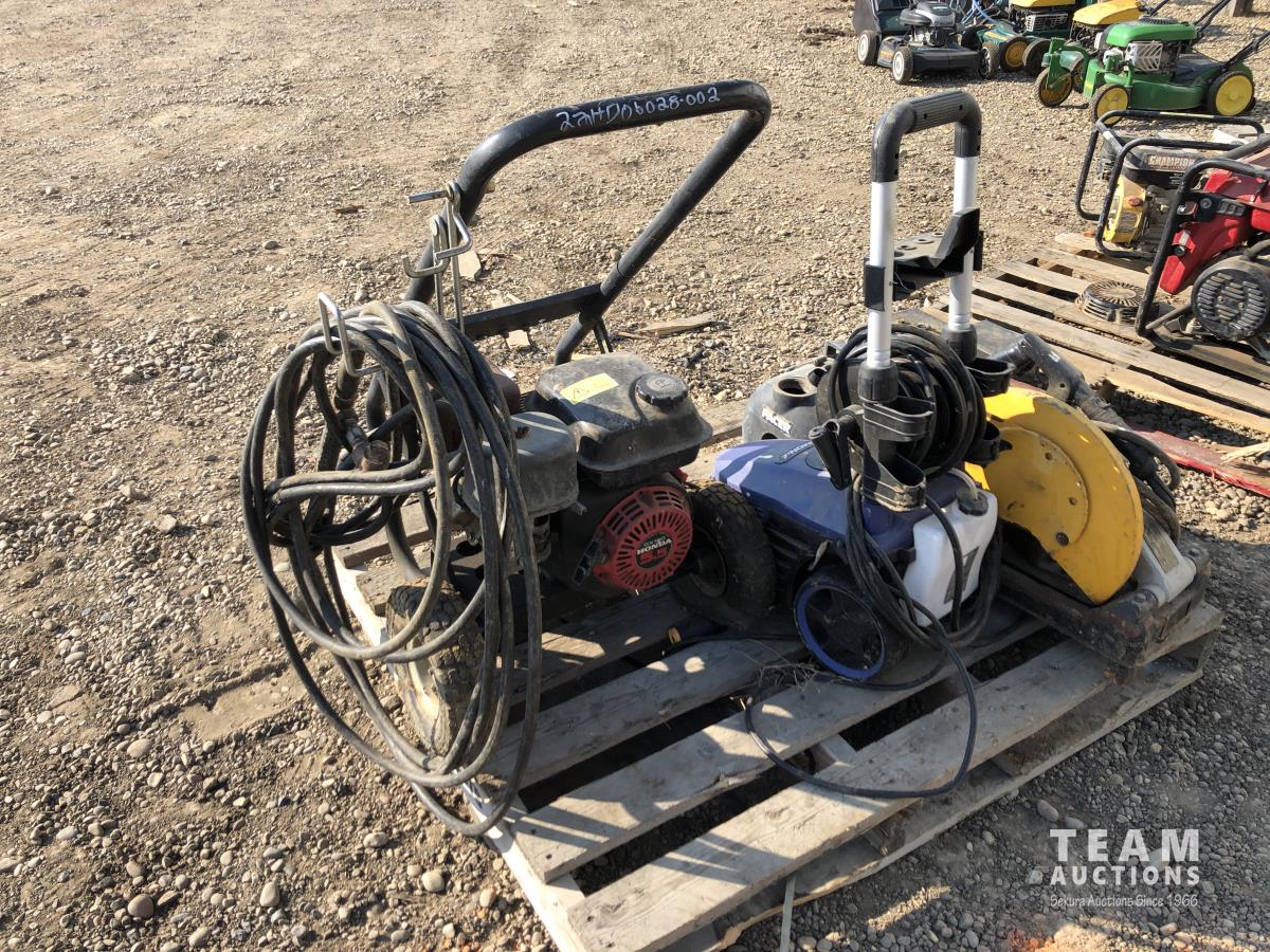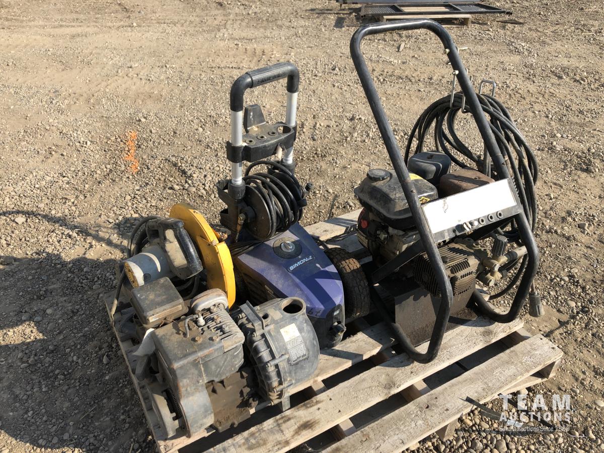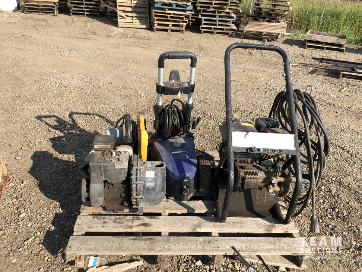 Briggs & Stratton water pump, Simon12 pressure washer, Dewalt cut off saw, Honda GX160 pressure washer 5.5 HP