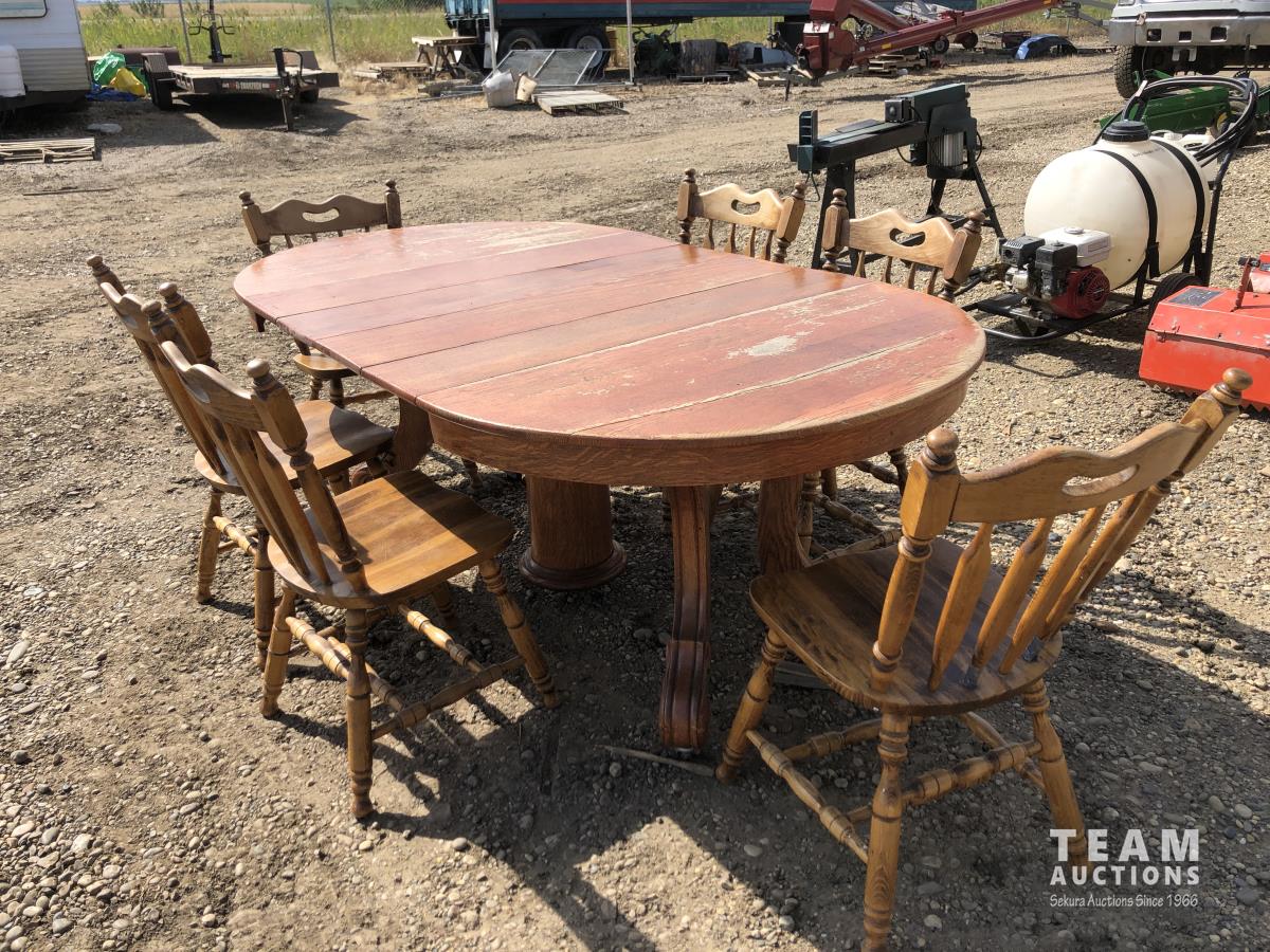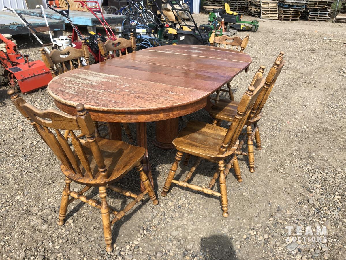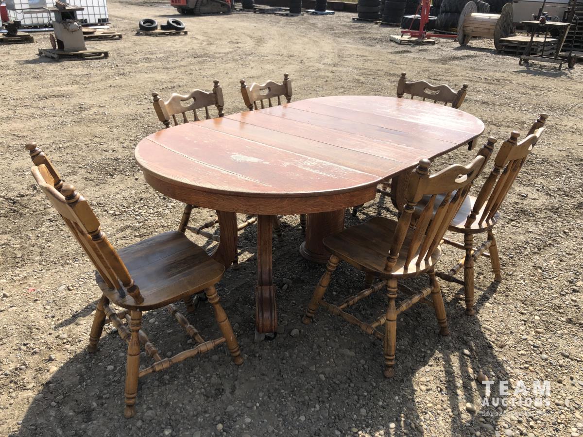 275 Oak Wooden Table & (6) Wooden Chairs