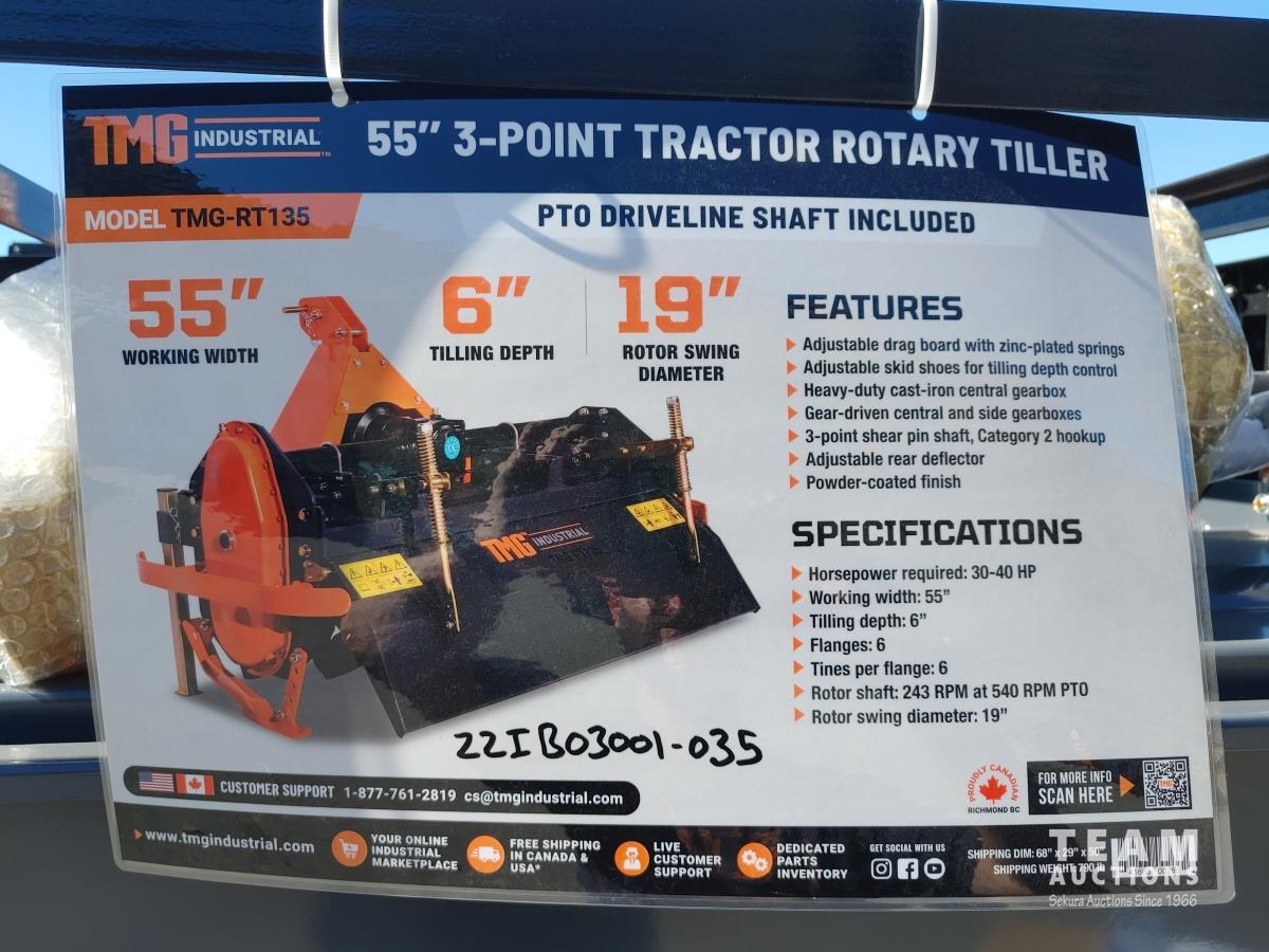 254 TMG Industrial RT135 55 Inch 3-Point Hitch Rotary Tiller (Unused)