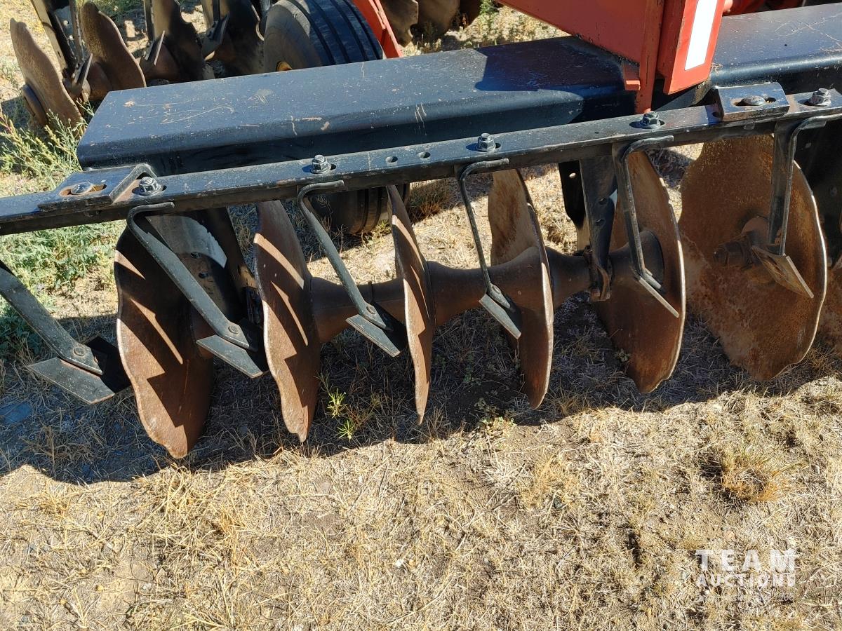 Rear 24 inch serrated disc, 10 inch spacing, front 22 inch serrated disc, 10 inch spacing, mud scrapers.