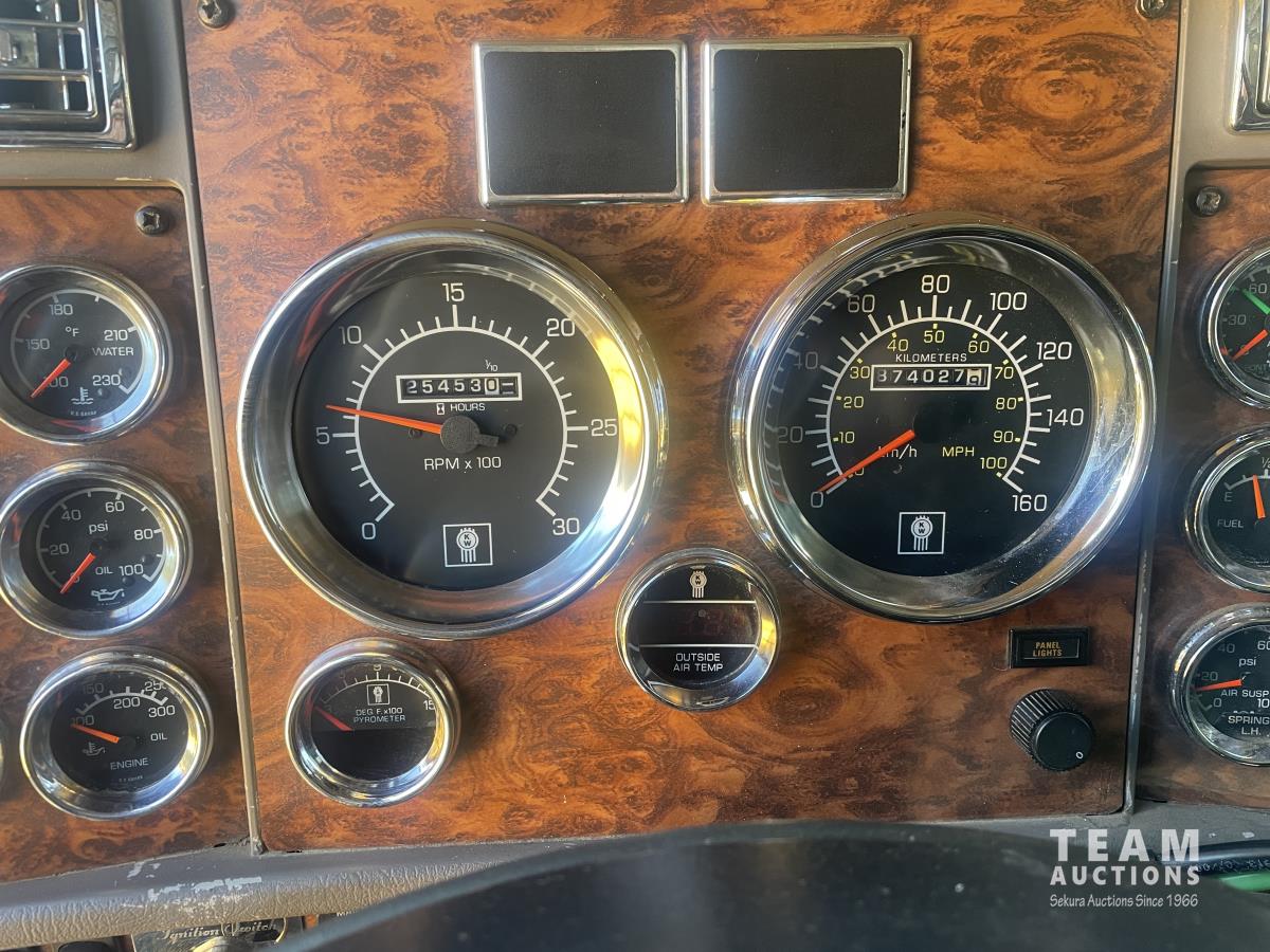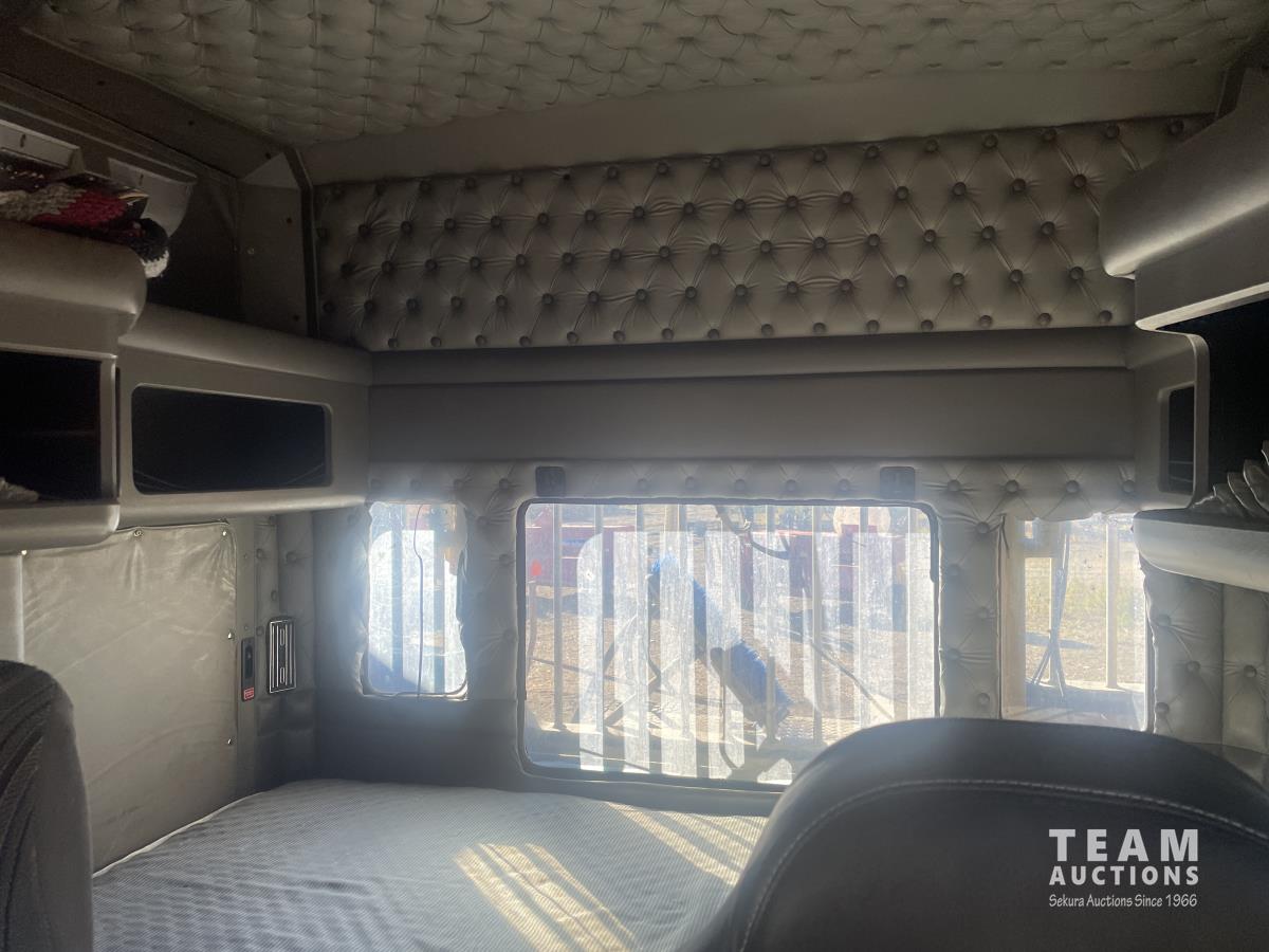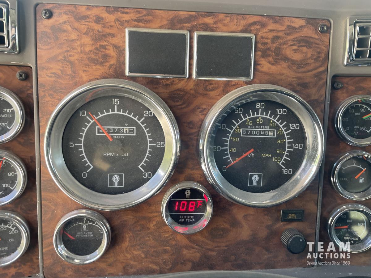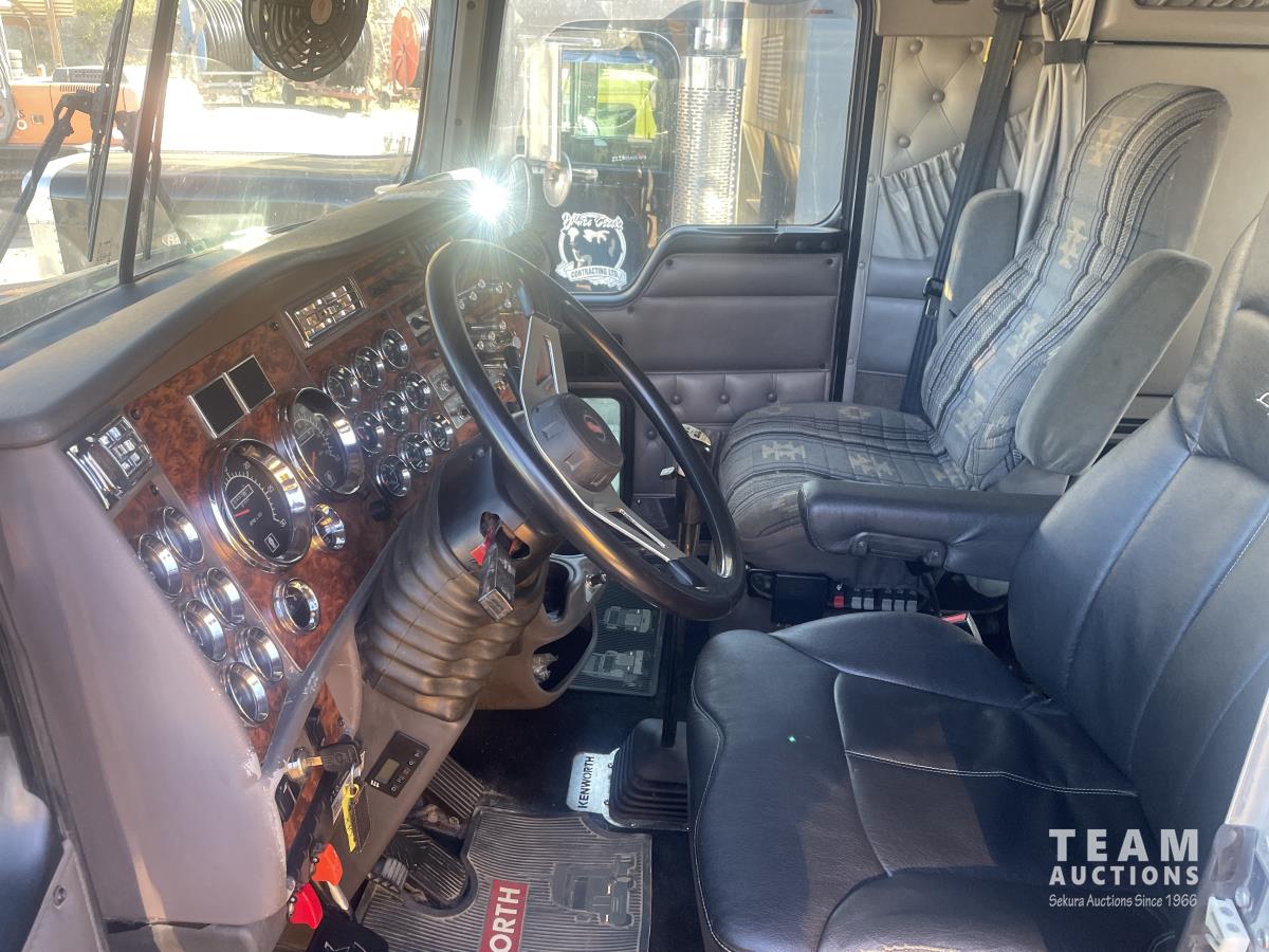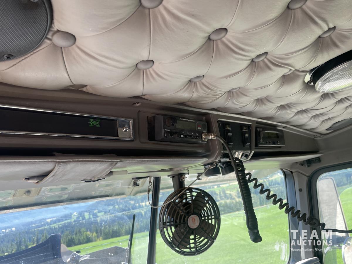 Caterpillar, s/n 6NZ, Eaton Fuller 18 speed transmission, NeWay air ride suspension, 4 way locking differential, fifth wheel slide, 20,000 lb front, 46,000 lb Eaton rears, 228 inch wheelbase, aluminum moose bumper, aluminum rims, 11R24.5