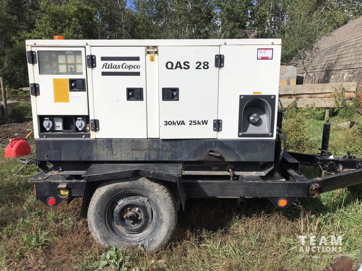 2496 2002 Altas Copco QAS28 30KVA 25KW Generator on S/A Trailer