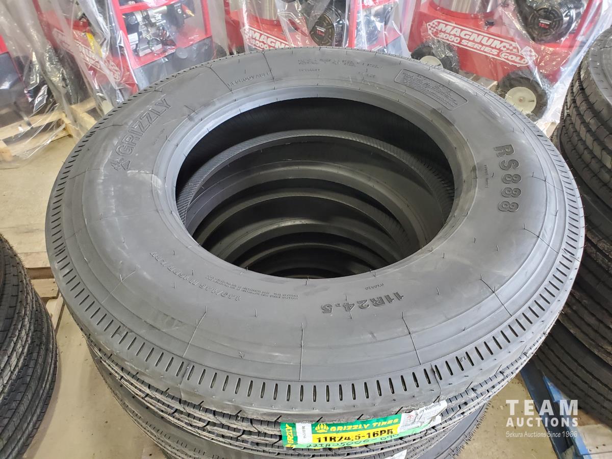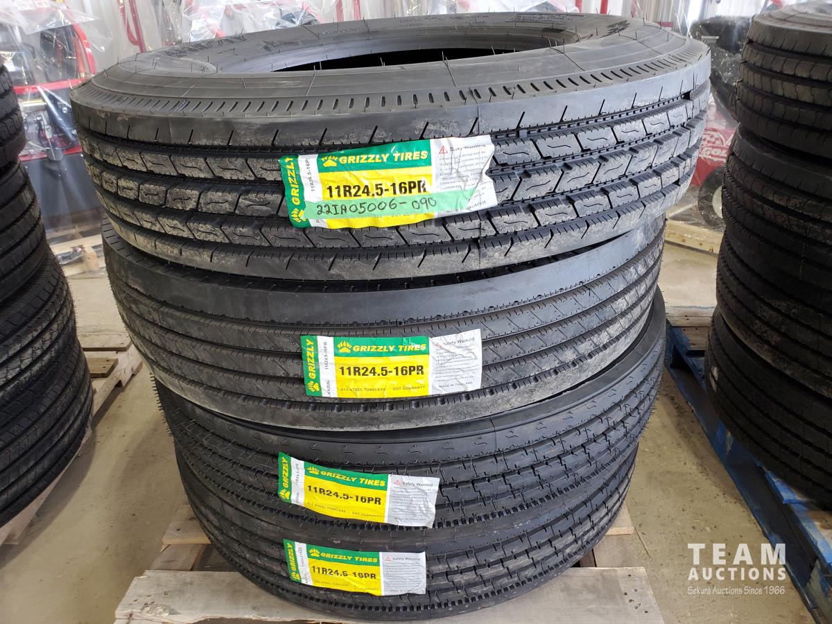 1856 (4) Grizzly 11R24.5 Inch Tires (Unused)