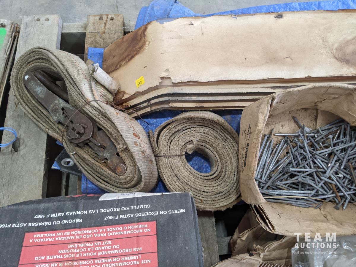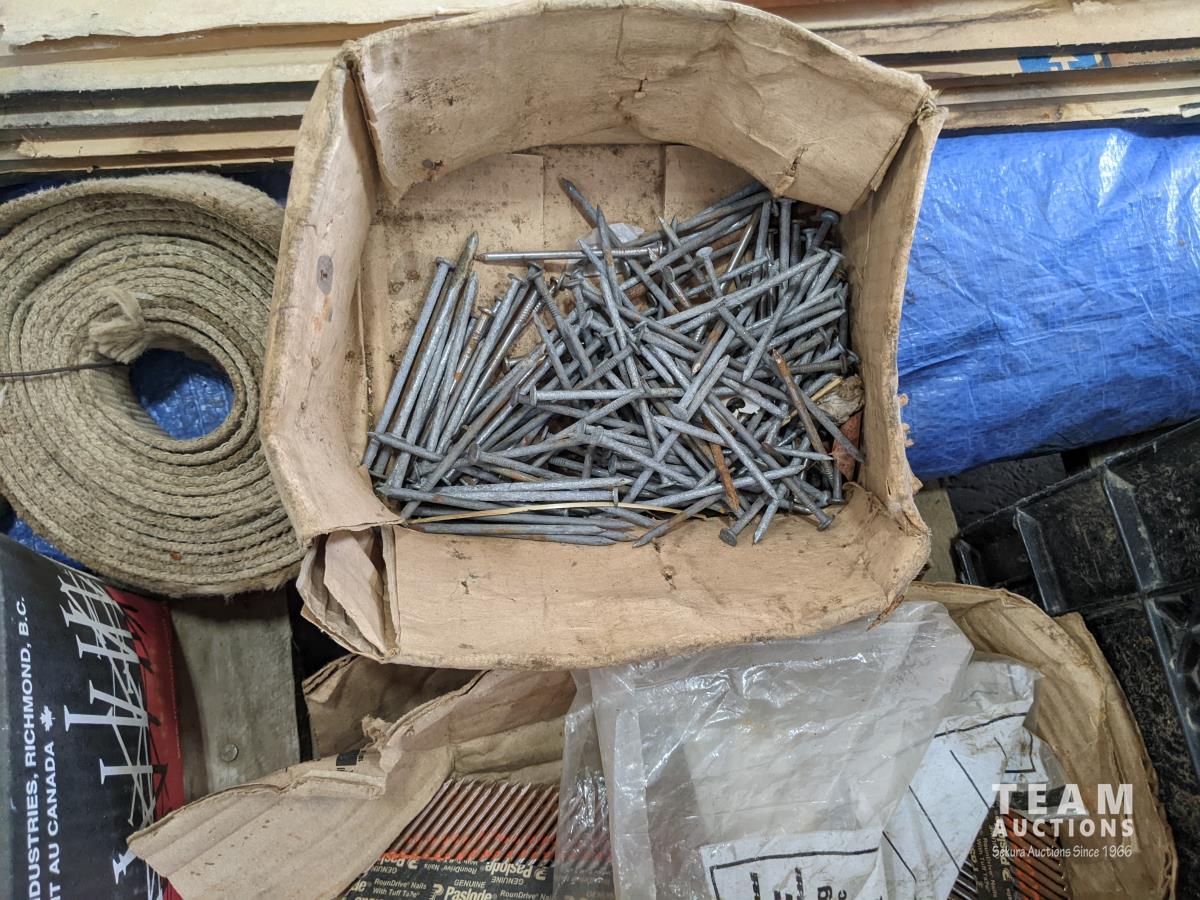 1203 Qty of Assorted Nails, Hand Tools & Tarp