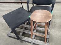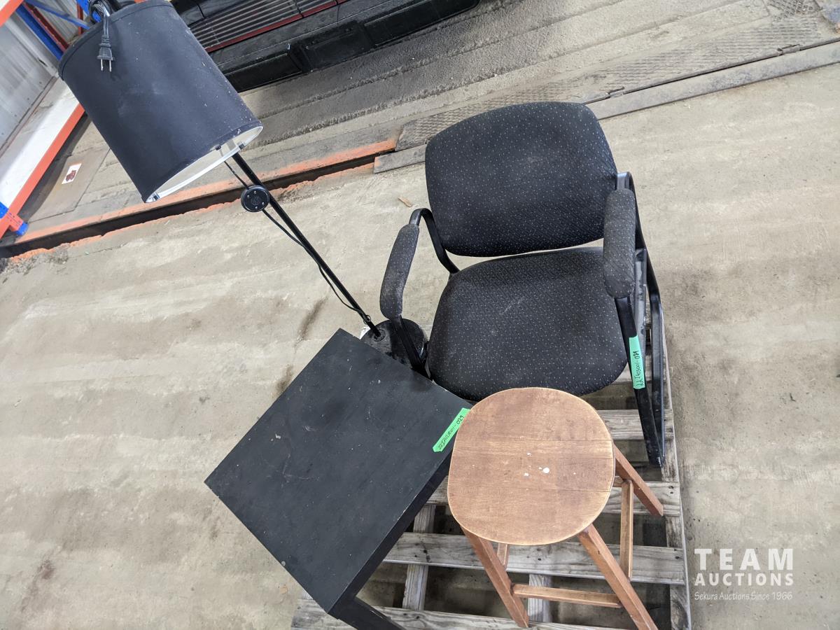 stool, chair, side table and lamp