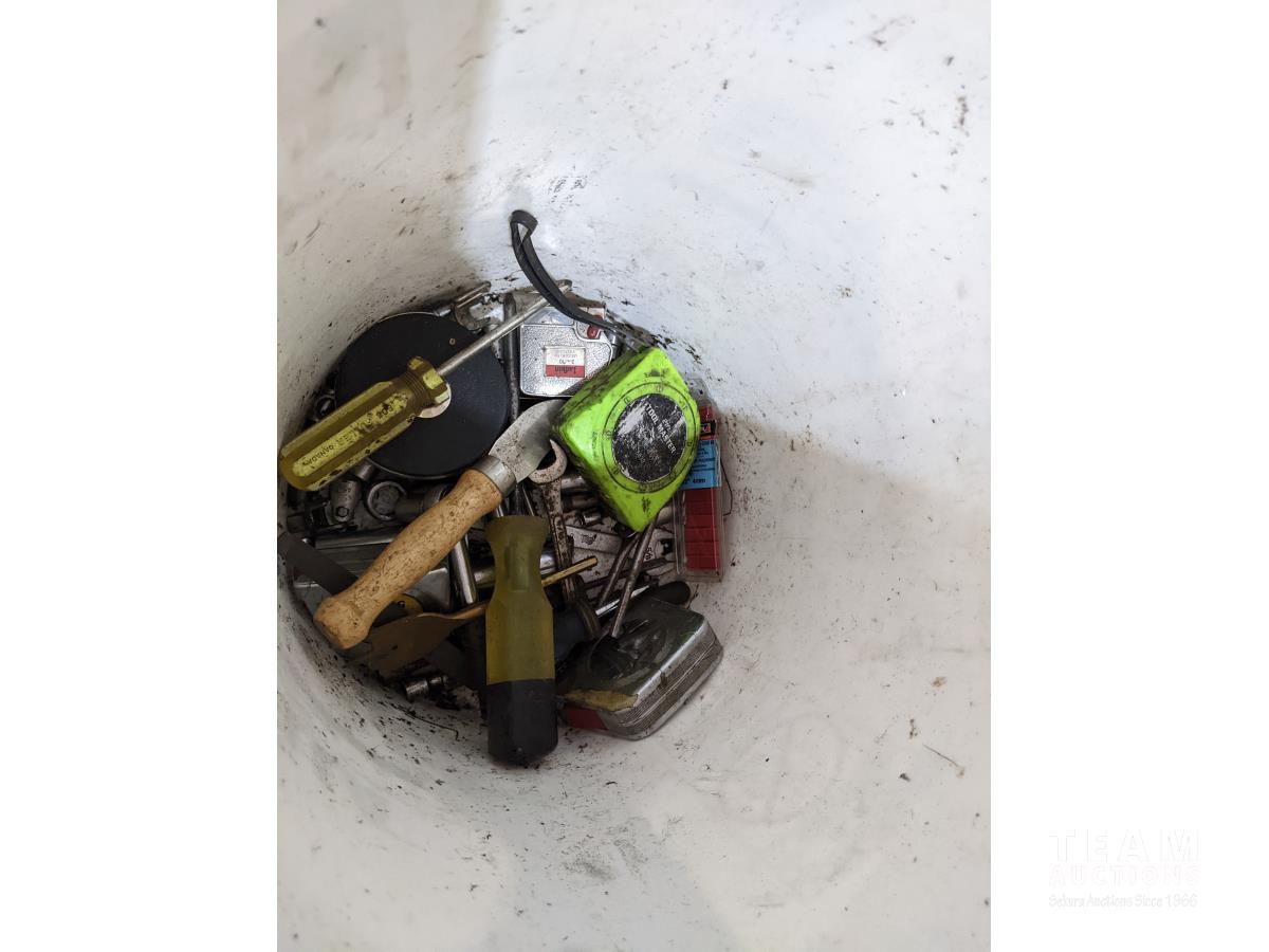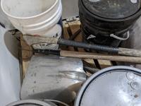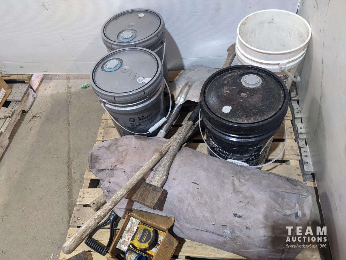 Hand tools, various fluids, shovel, hay fork, axe, tent (unsure if all contents are there)
