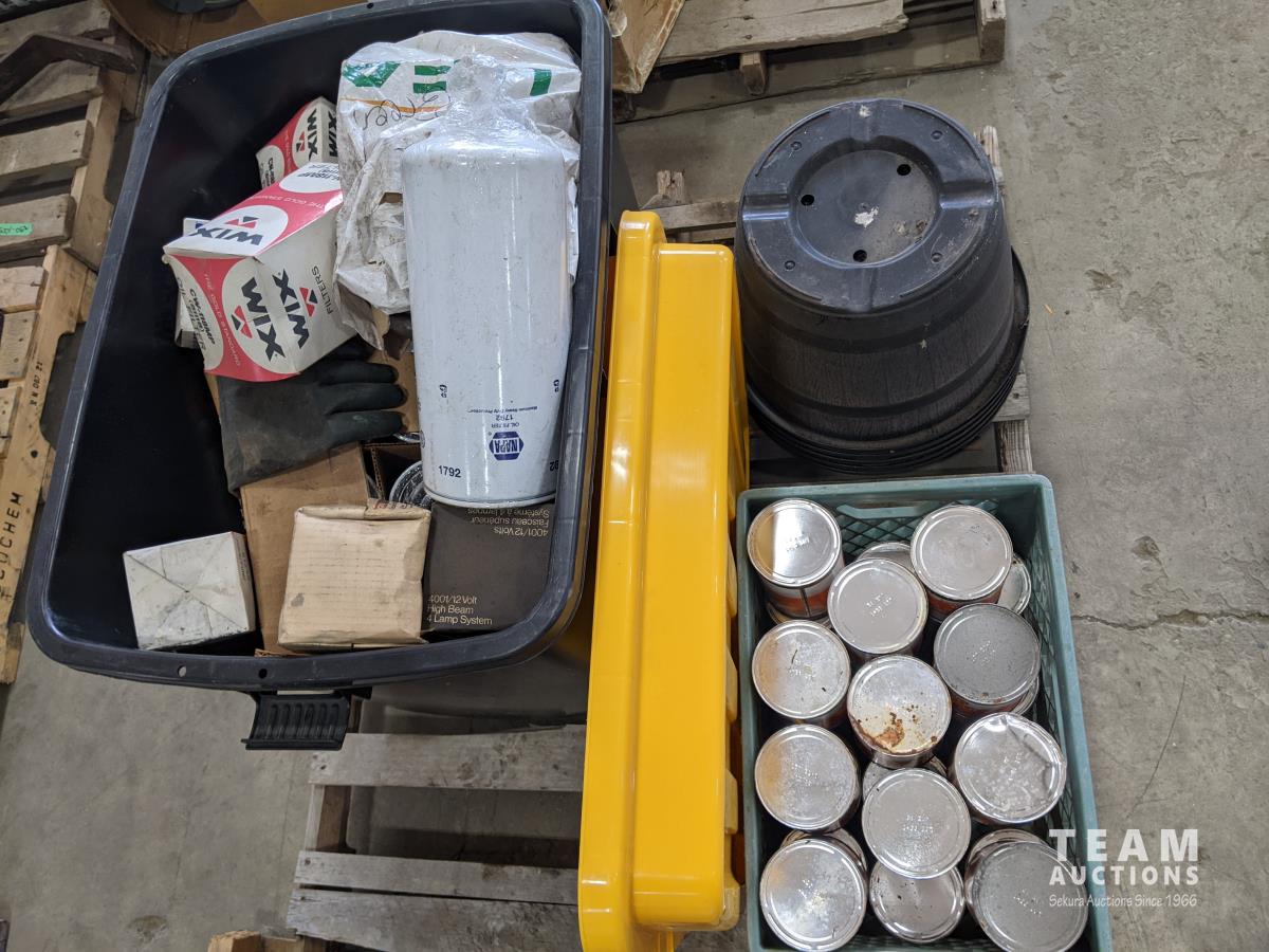 Qty of Shell aeroshell turbine oil, assorted filters, plastic planters