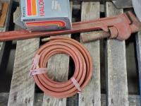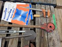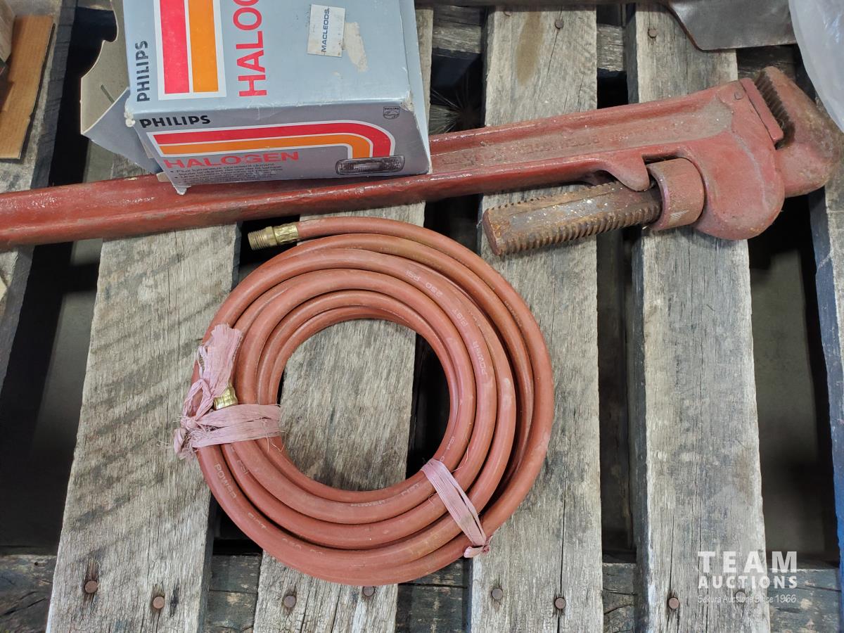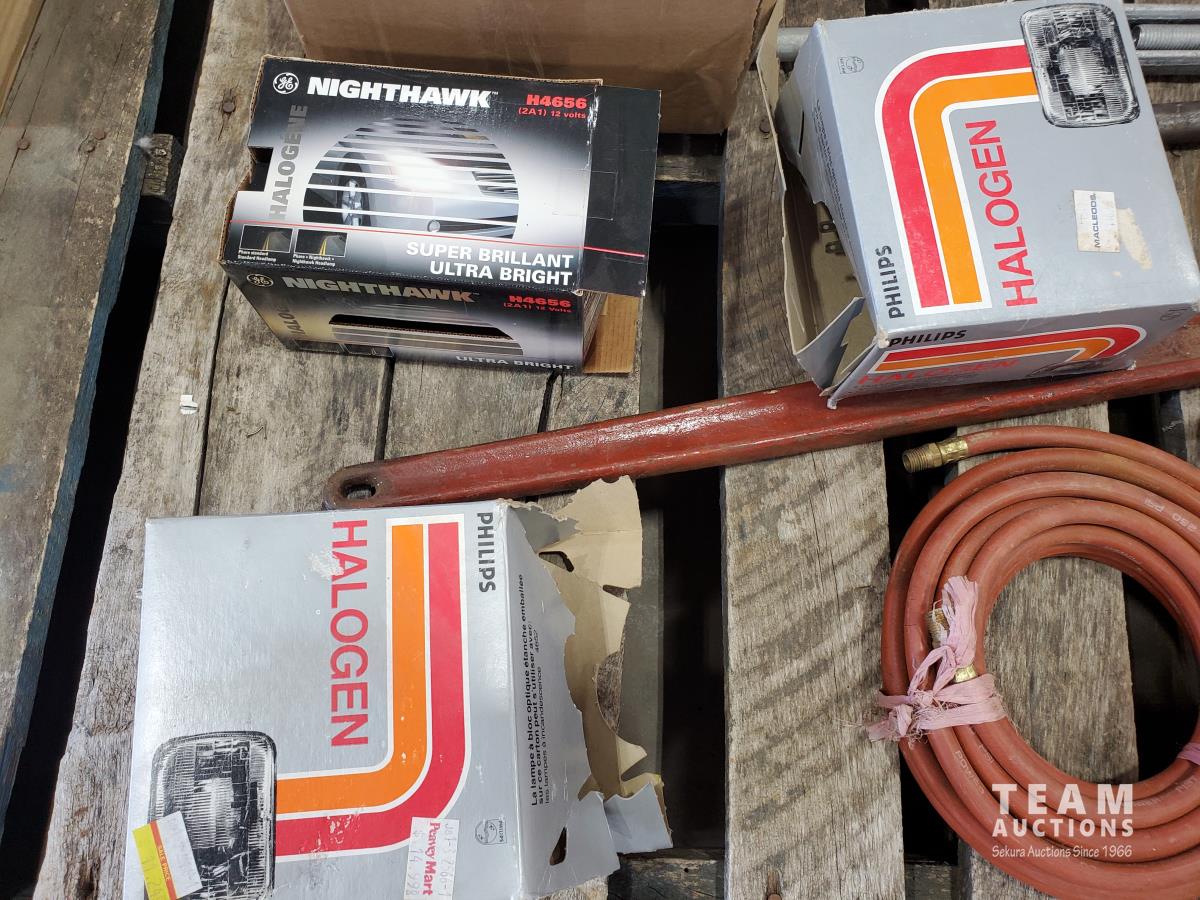 Pipe wrench, air drill parts, heater core, head lights, weed whip blades