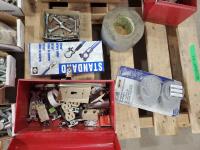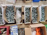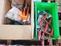 Assorted bolts, recepticals, battery cables, tool box, foam anchors