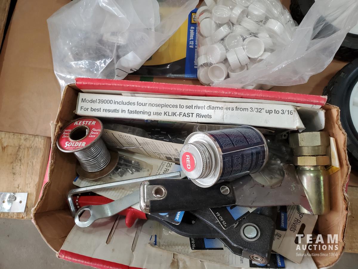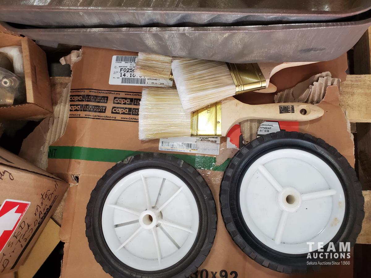 Wheels, painting supplies, solenoid, polishing discs, night light, door knob