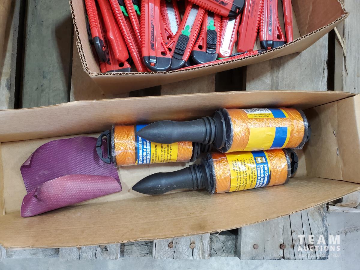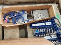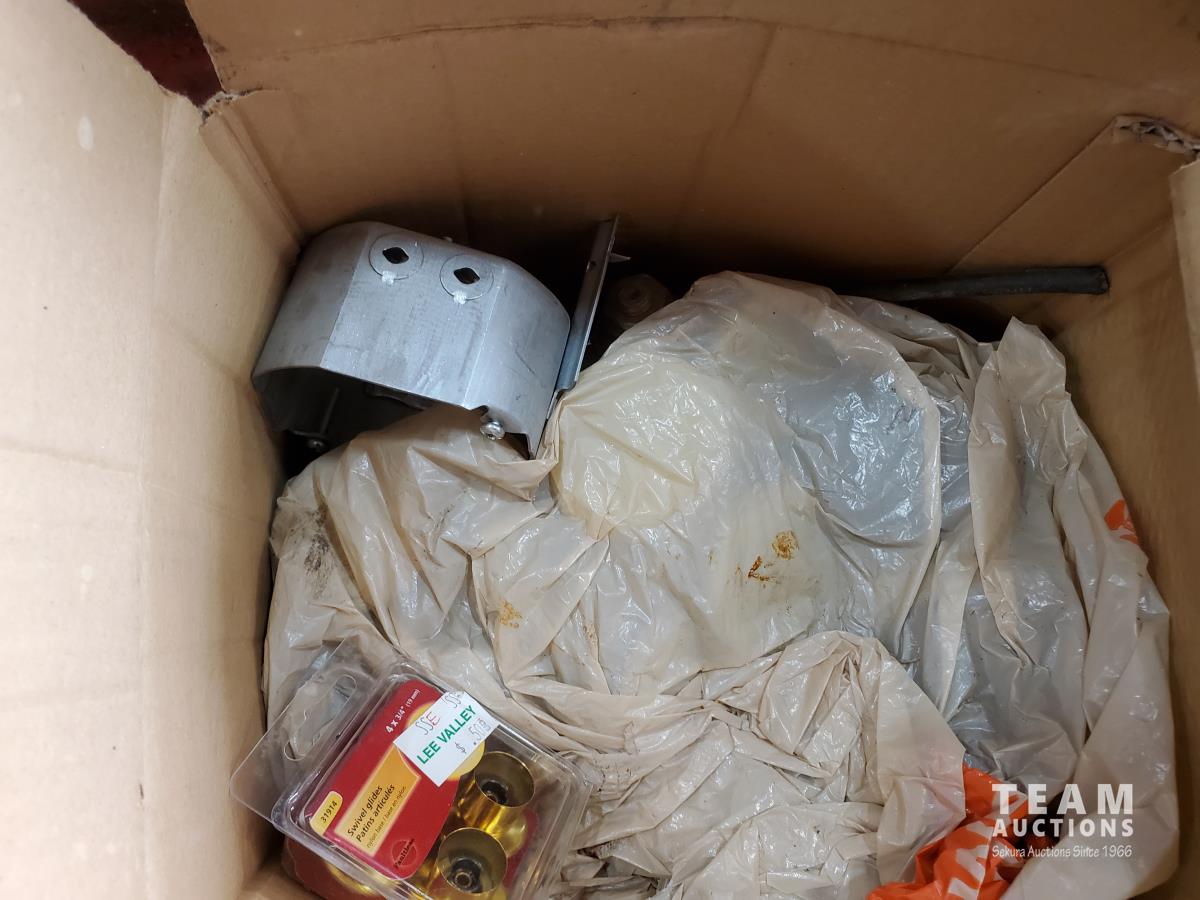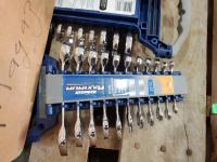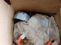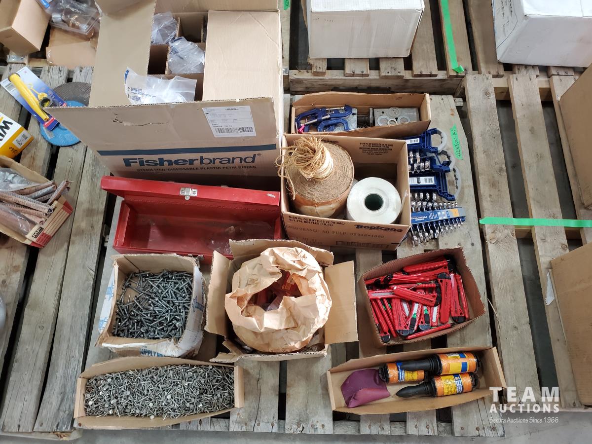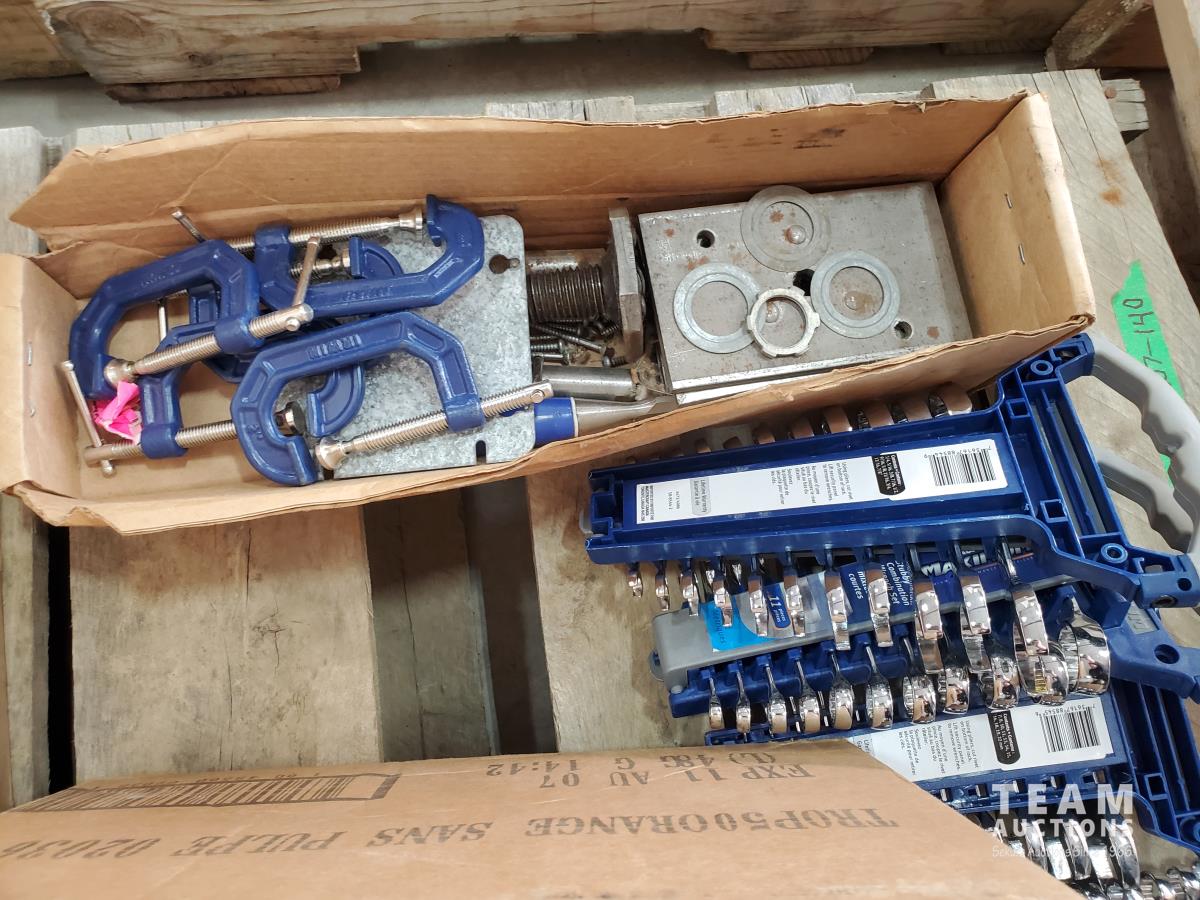 Petri dishes, mastercraft wrench sets, knives, roofing nails, screws, tool box