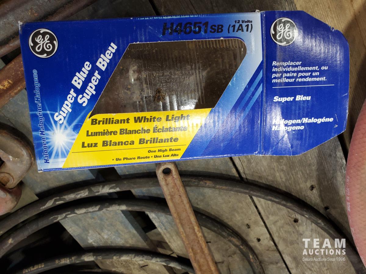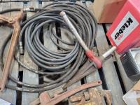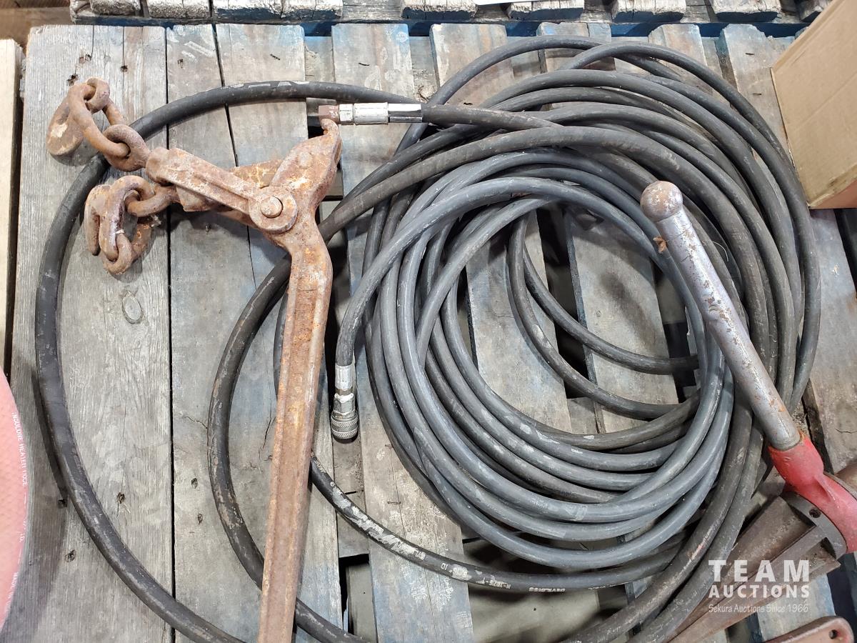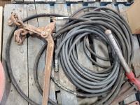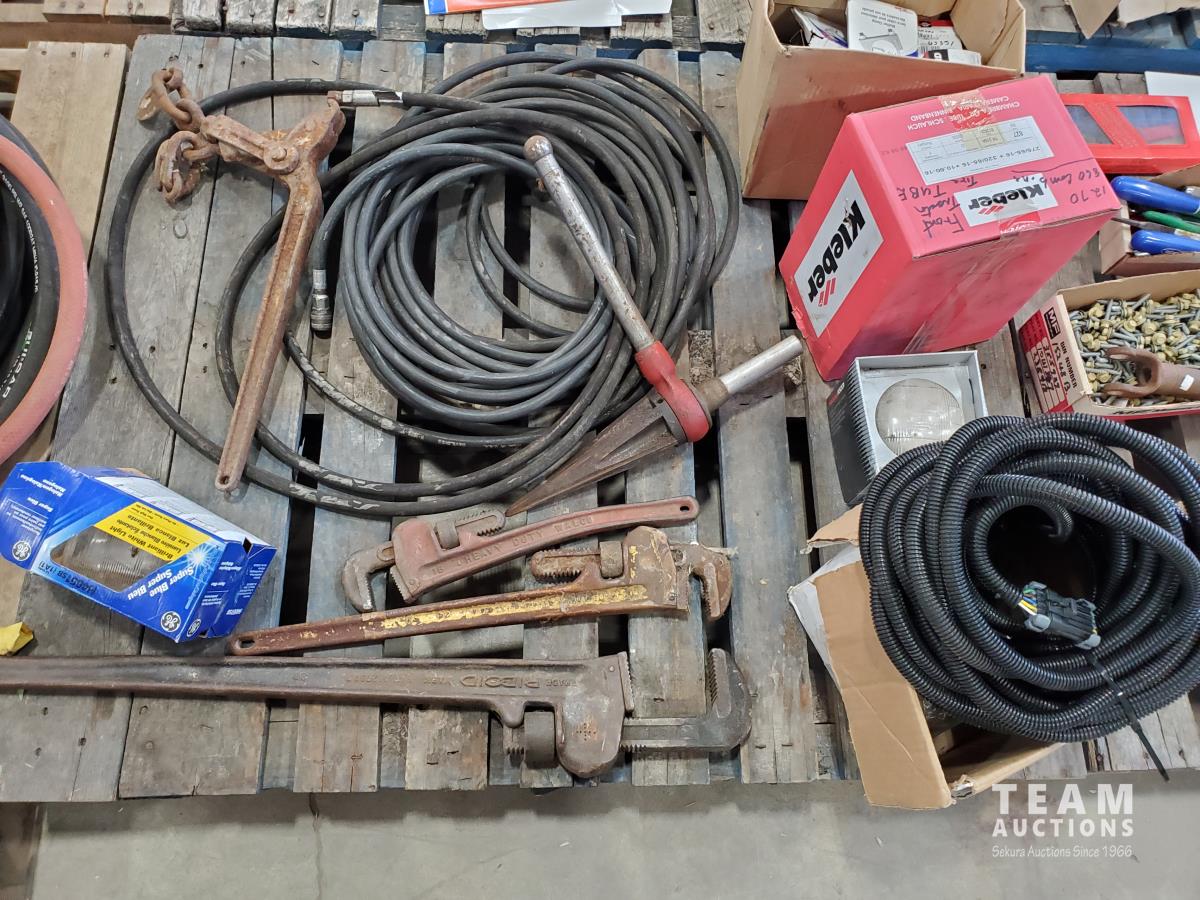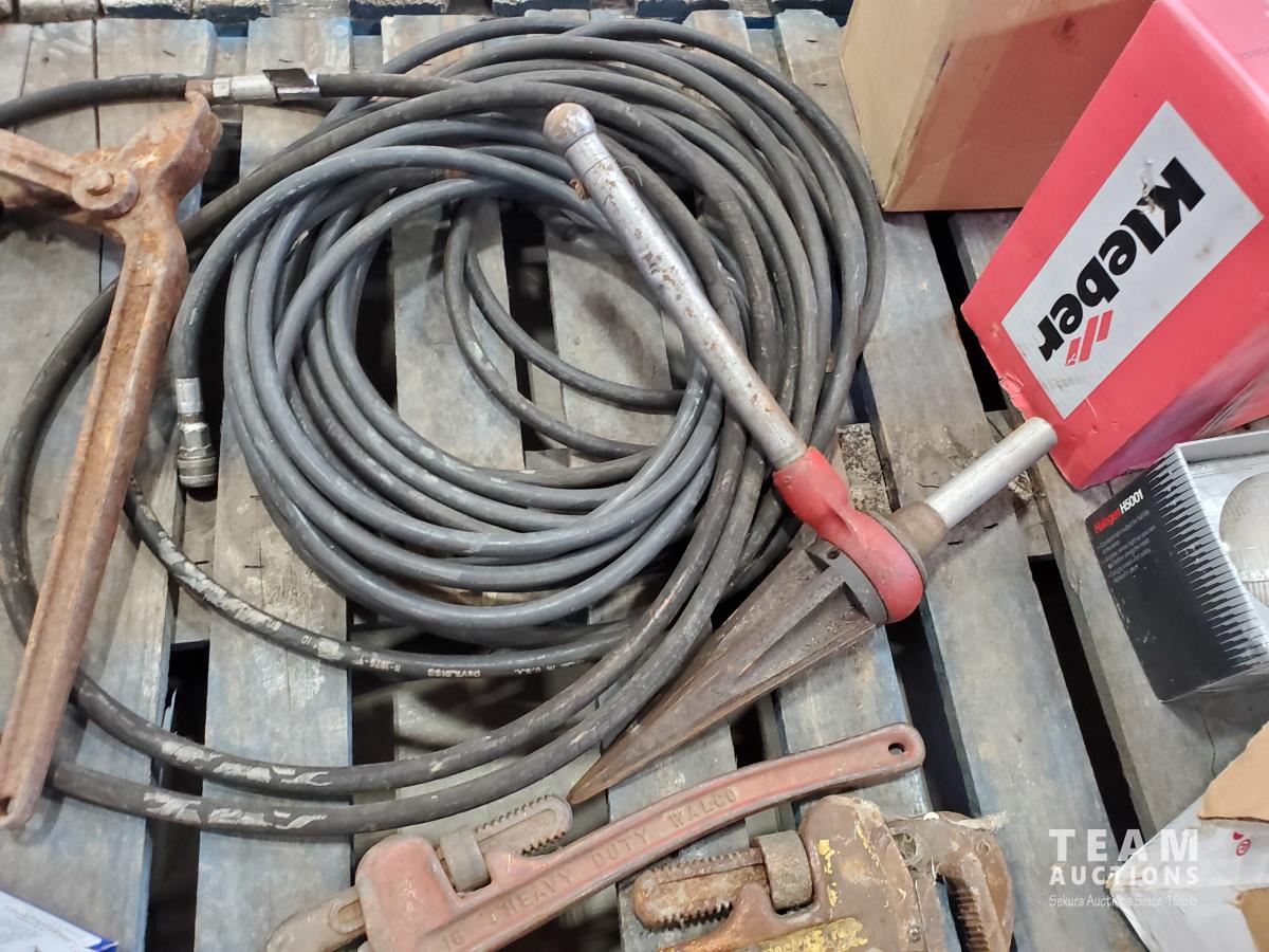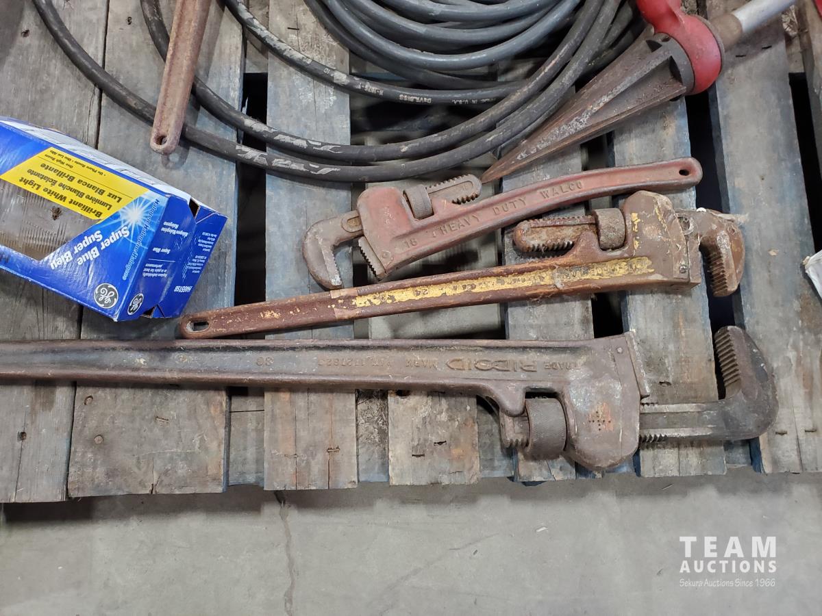 Pipe wrench, hydraulic hose, muffler clamps, tractor tire tube