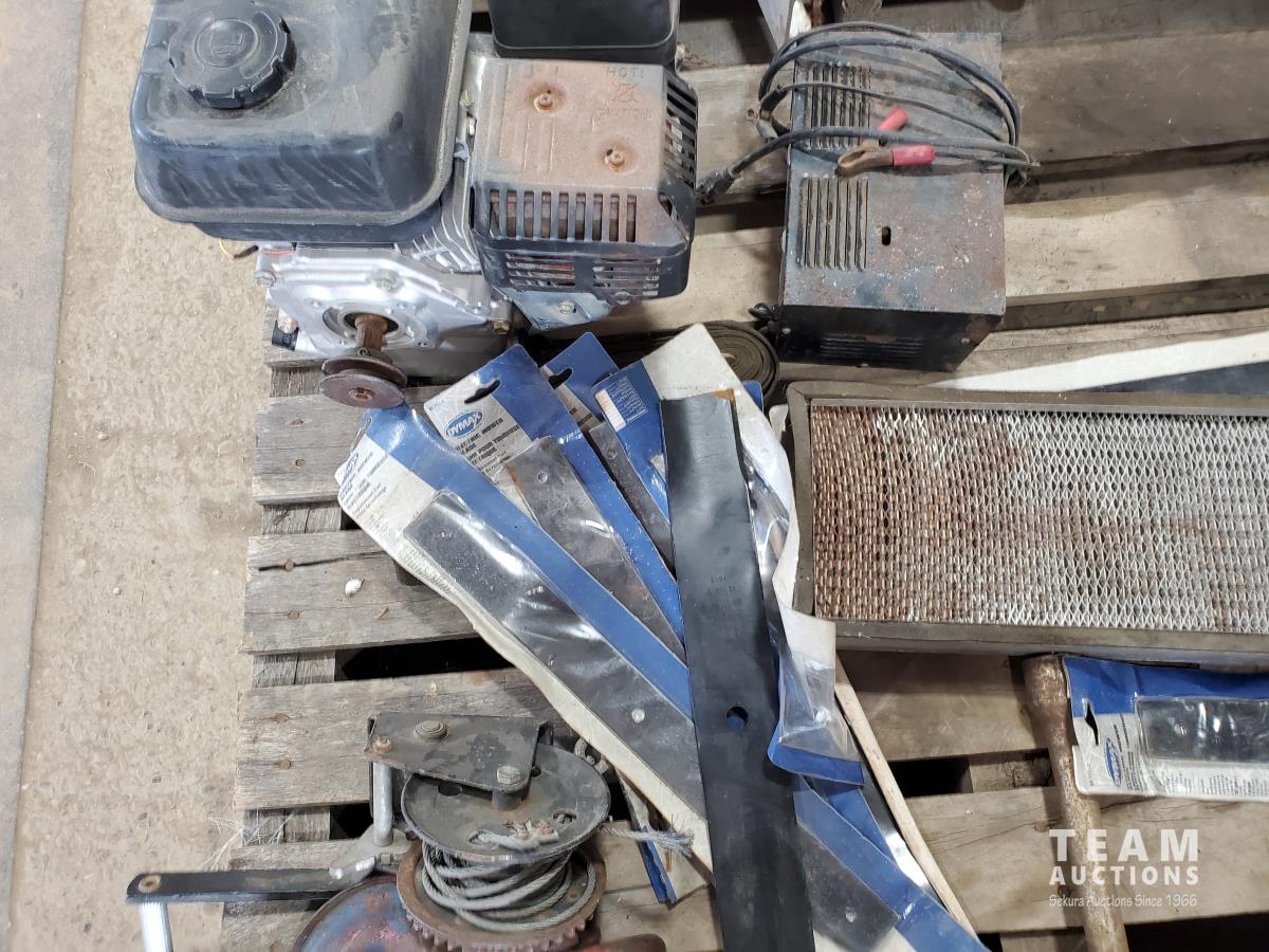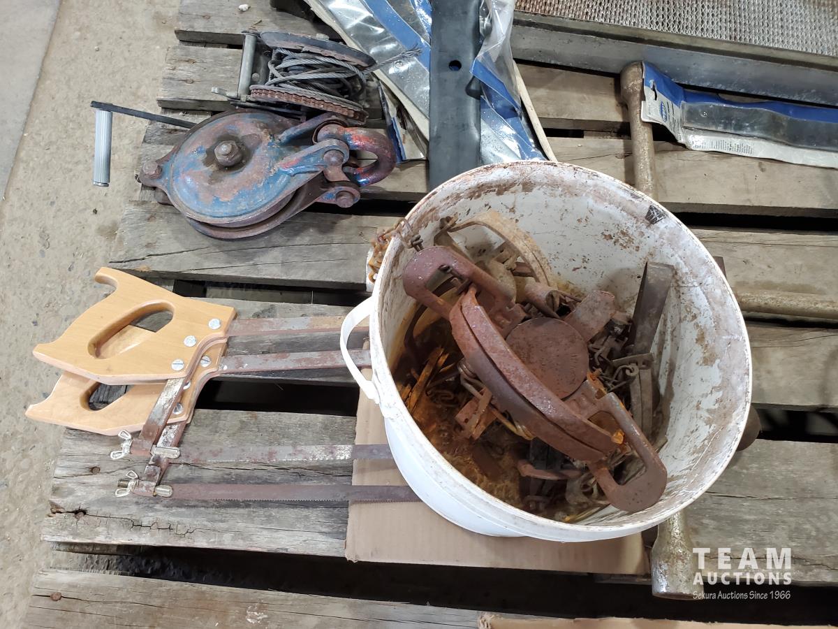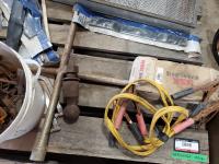 Powerfist 6.5 HP gas engine, hand saws, booster cables, battery charger, traps, pully's