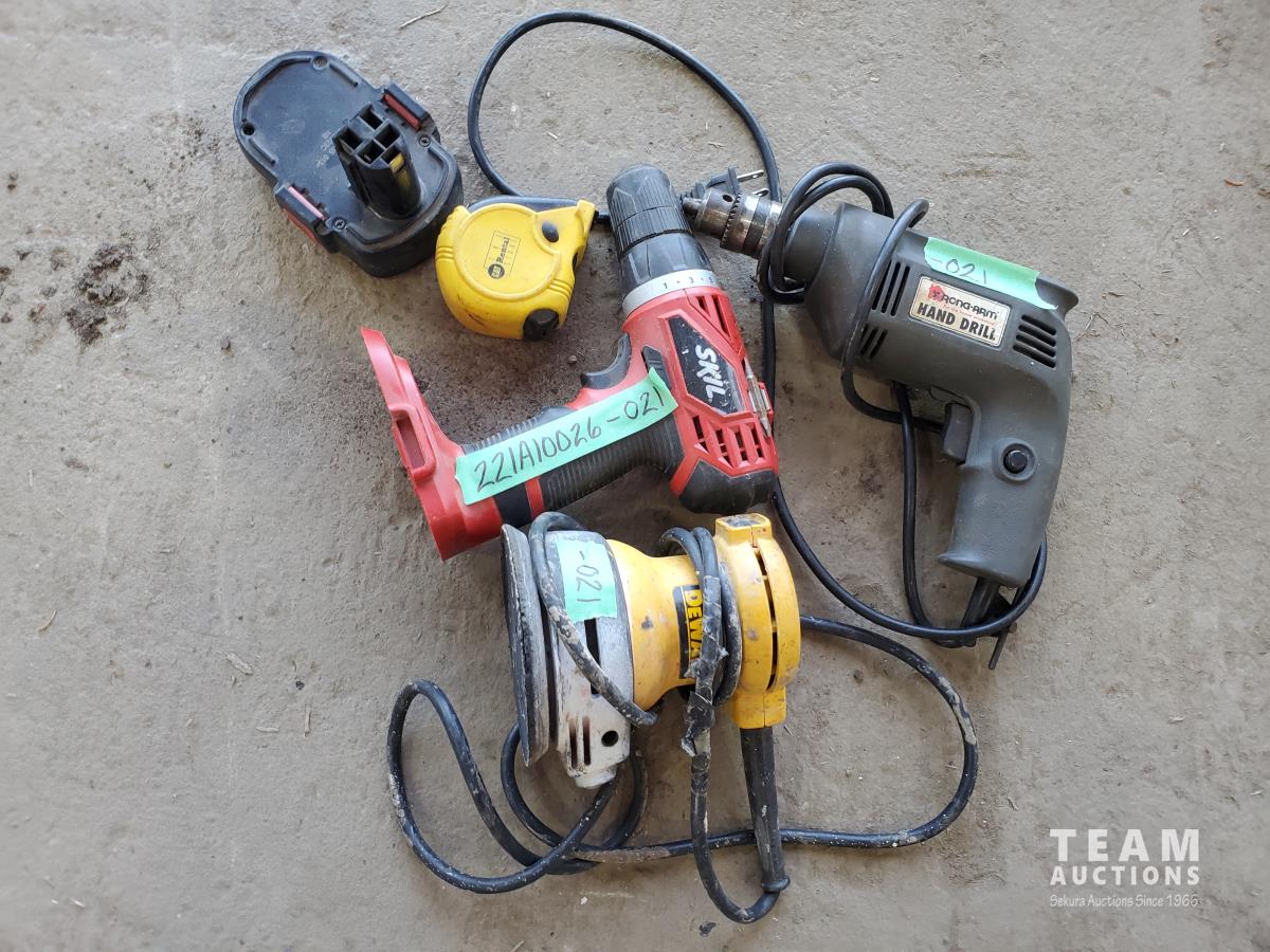 Sander, corded drill, cordless drill, measuring tape