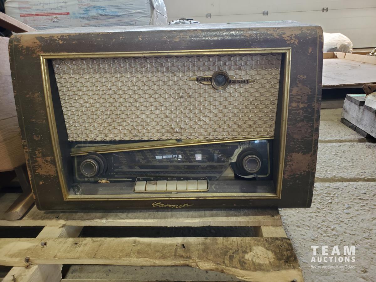 Norde Mende radio, hand scrapers, leather carry case