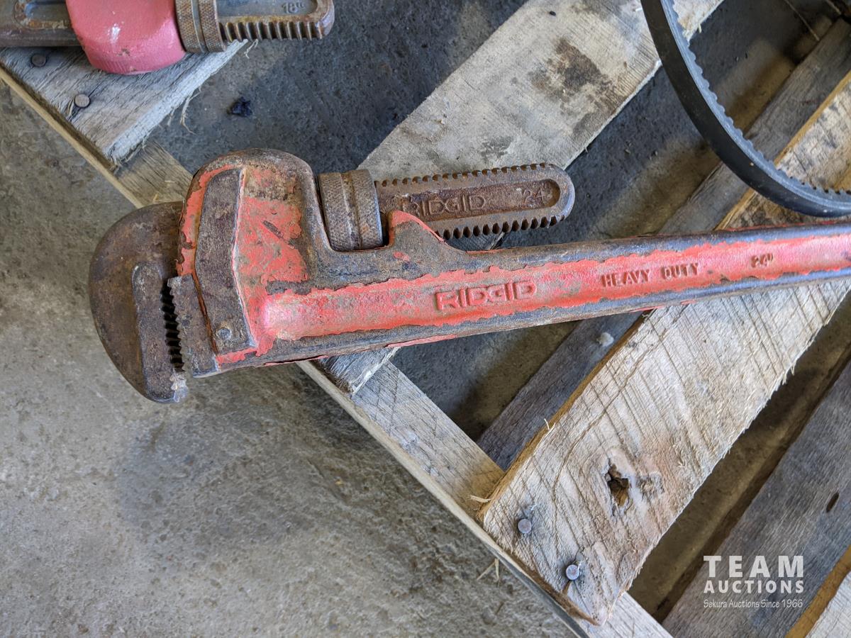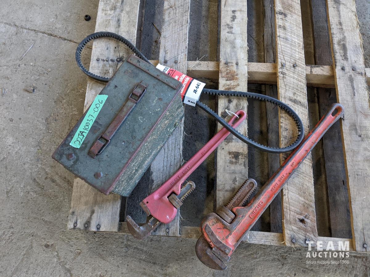 1754 Ridgid Pipe Wrenches, Ammo Box, Ford Belt