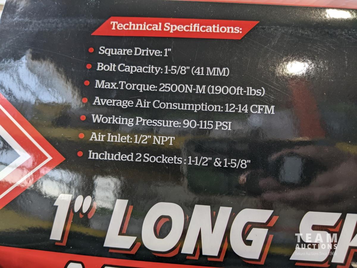 working pressure: 90-115 psi, includes (2) sockets- 1 1/2" & 1 5/8"