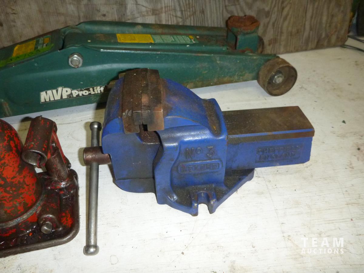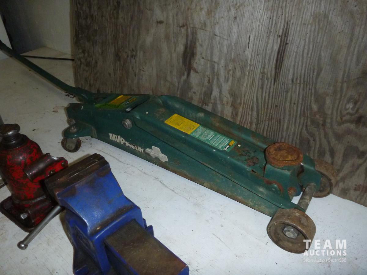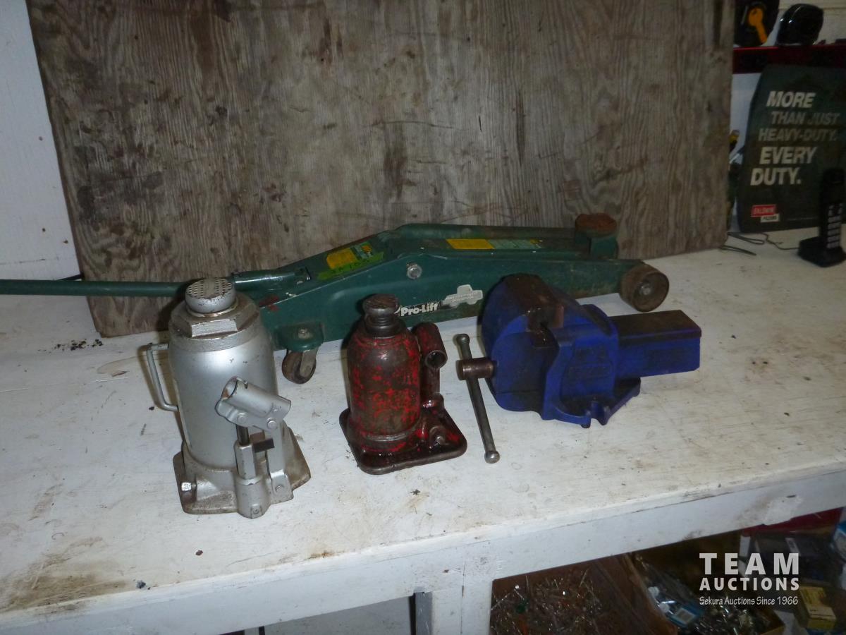2185 (2) Bottle Jacks, Small Floor Jack, 4 Inch Vise