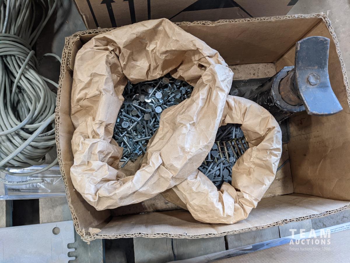 1138 (2) Boxes of Nails, (2) Boxes of Miscellaneous Tools, Box of Miscellanenous Electrical Supplies