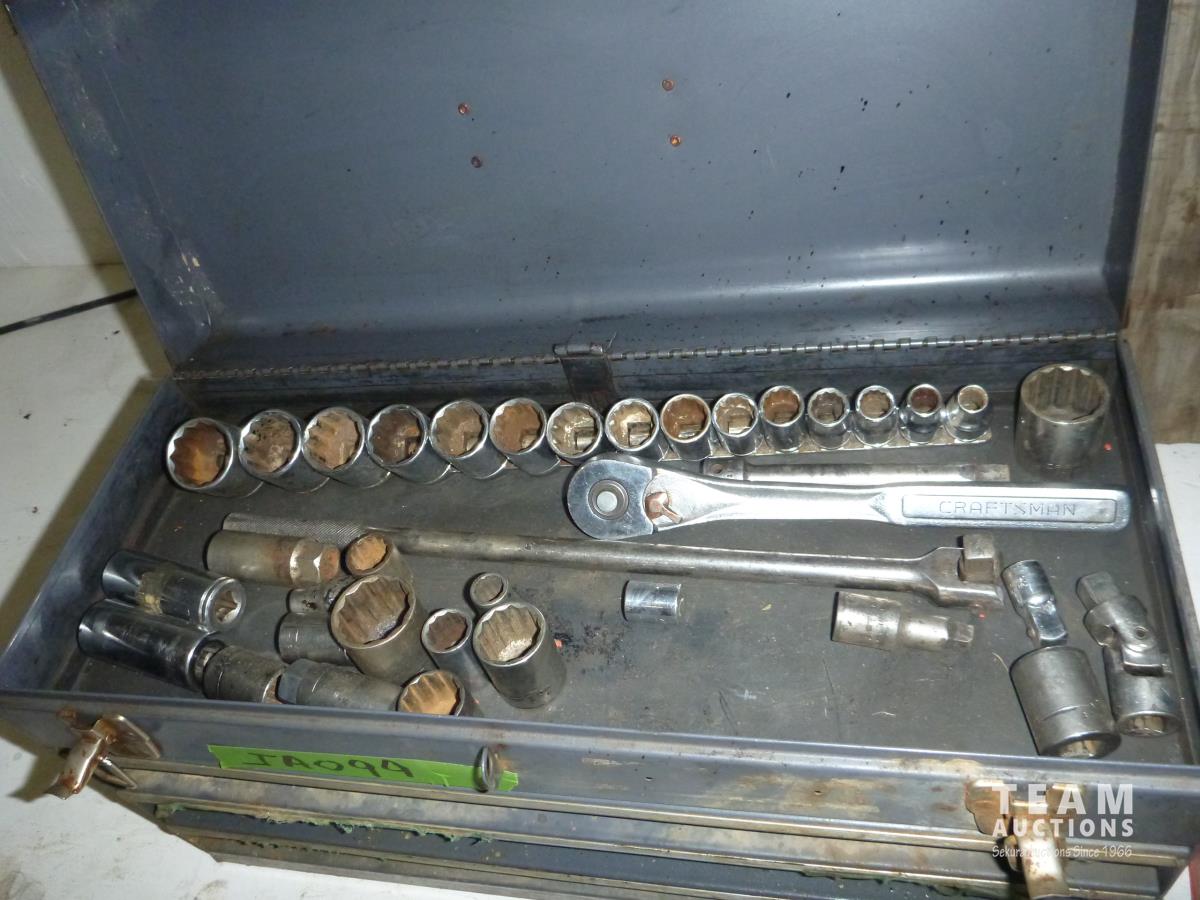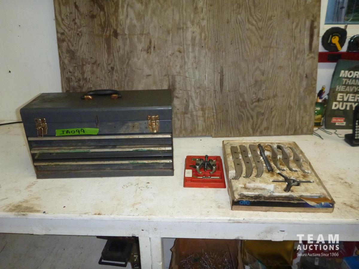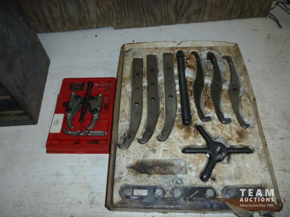 2181 (2) Puller Sets & Tool Box with 1/2 Inch Drive Socket Set and Miscellaneous Items
