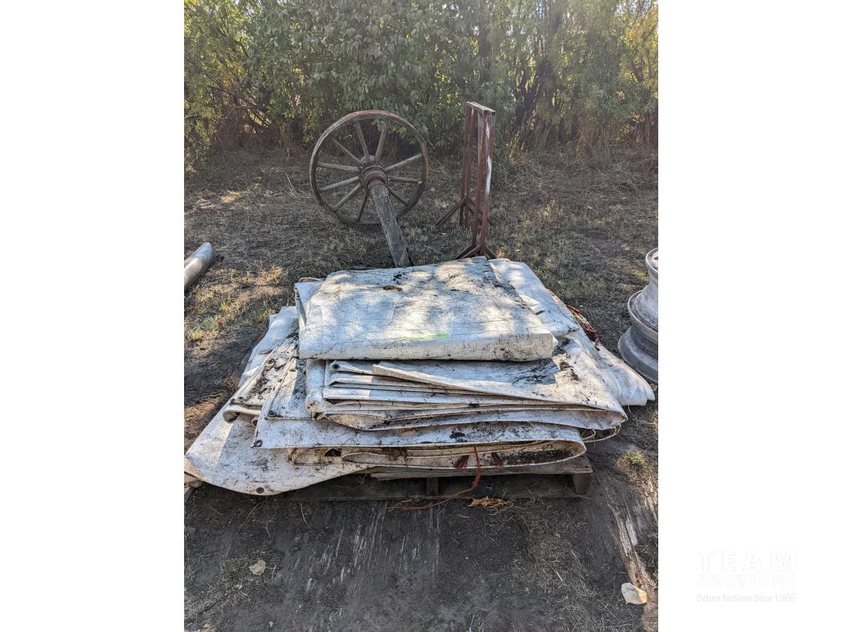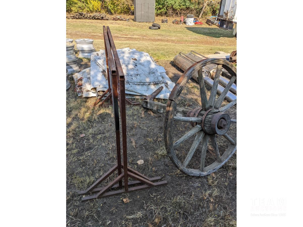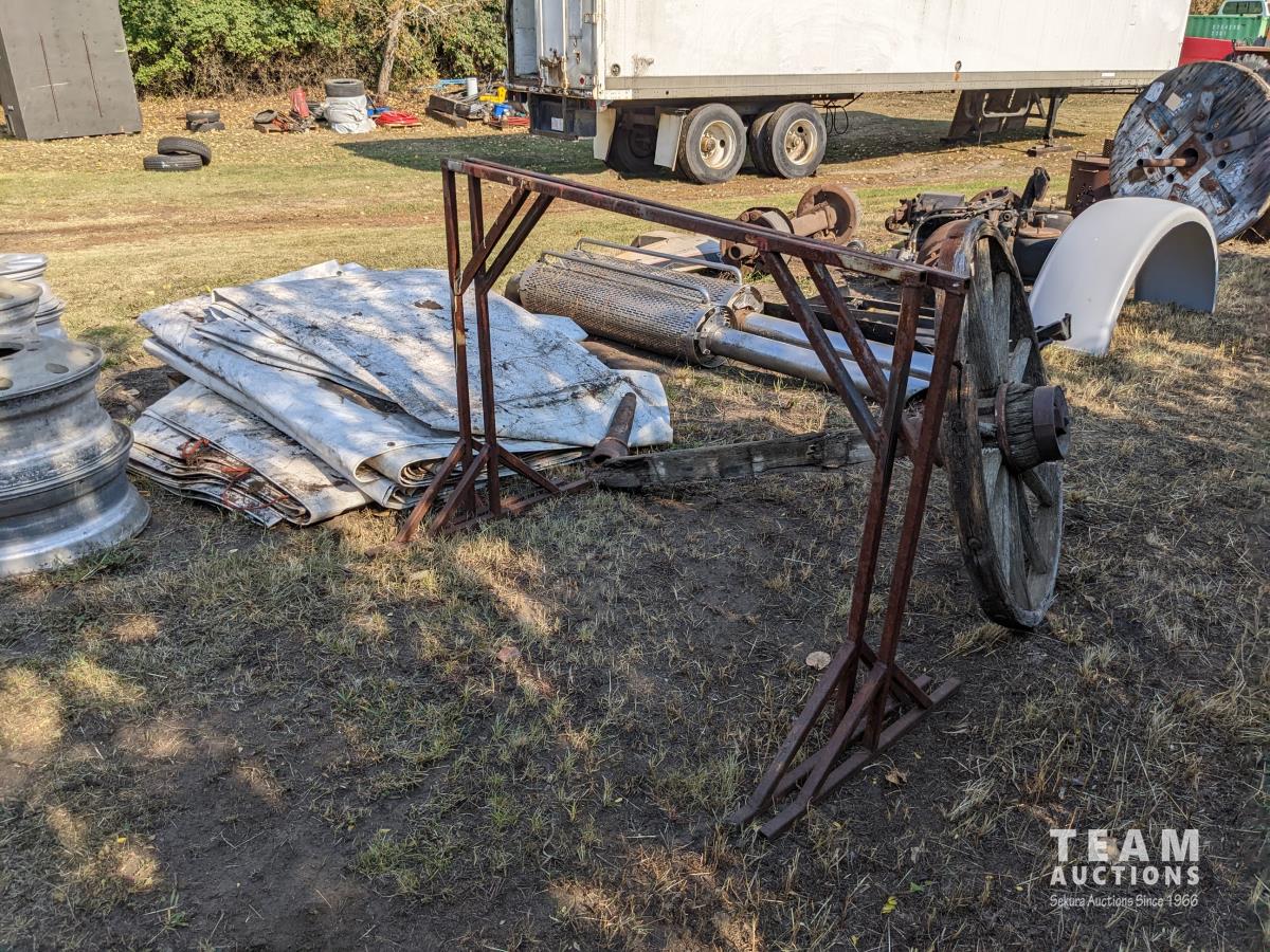 2235 (2) Steel Stands, Wagon Wheel, Miscellaneous Poly Tarps