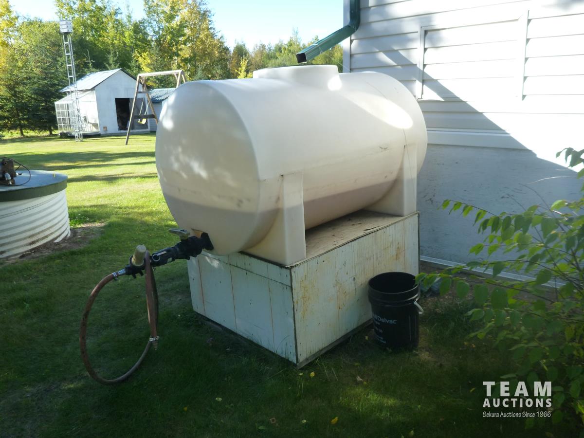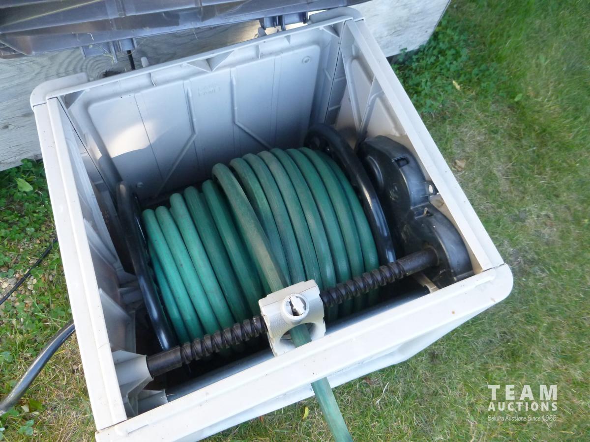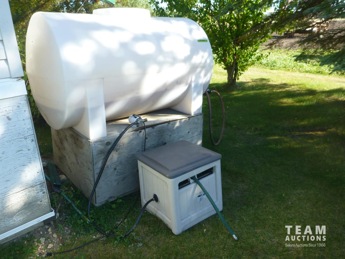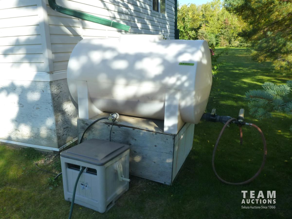 2130 250 Gallon Poly Tank, Garden Hose Reel & 110 Volt Pump