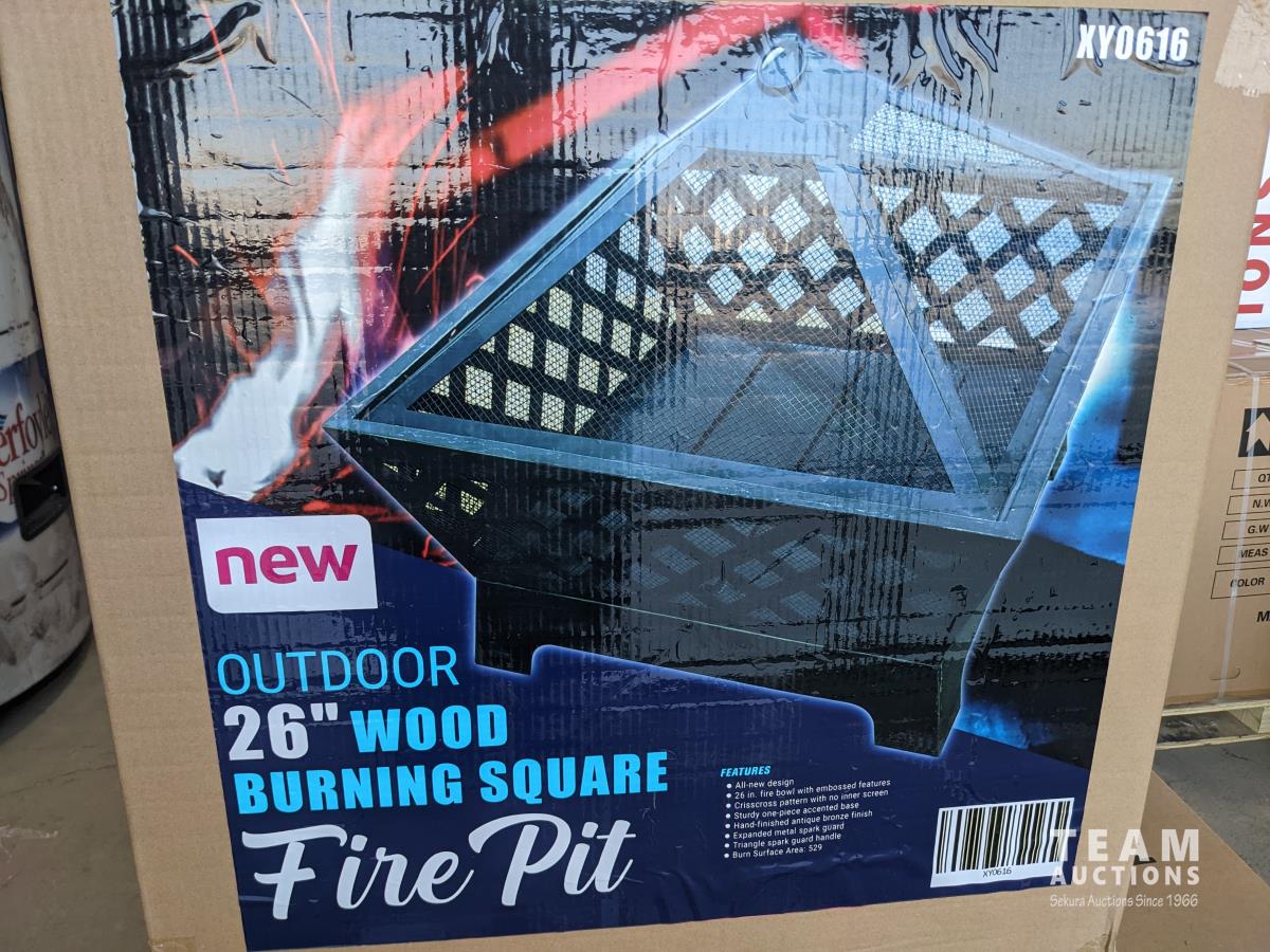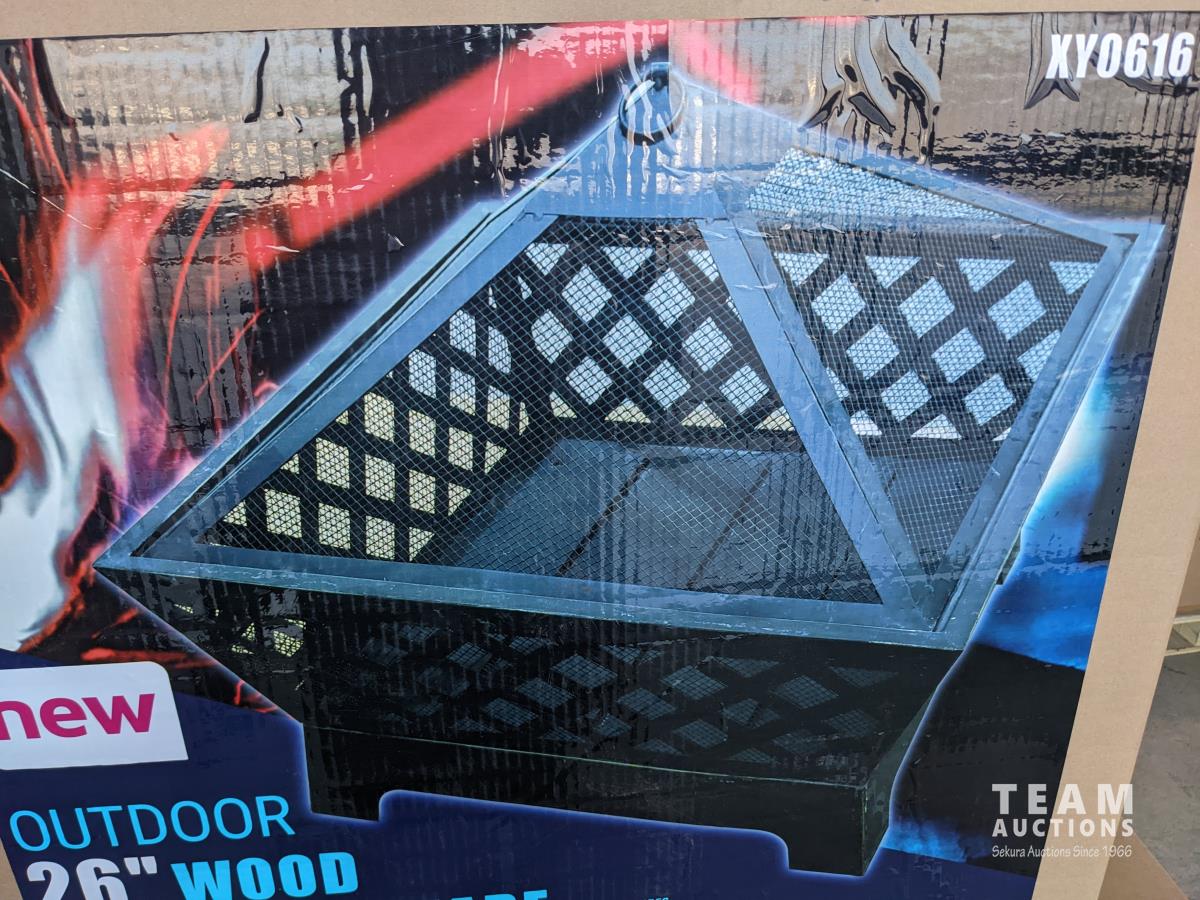 1287 26 Inch Outdoor Wood Burning Square Fire Pit (Unused)
