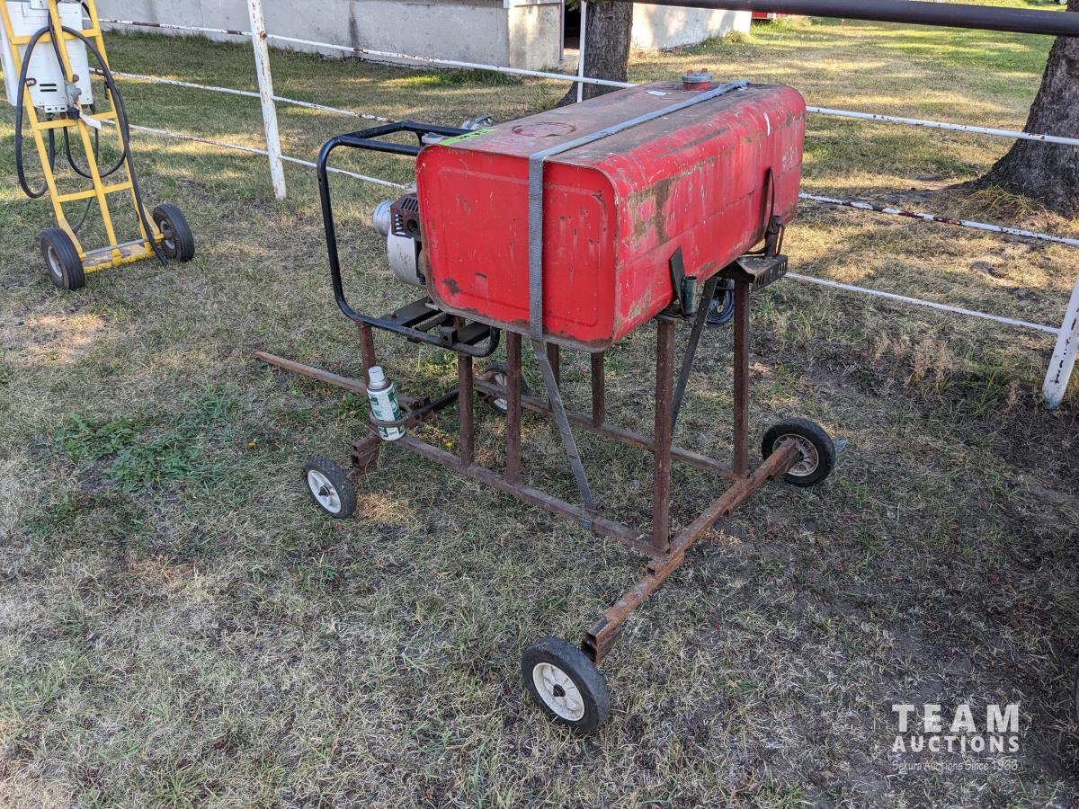 6.5 HP gas engine, large auxiliary fuel tank, on shopbuilt cart