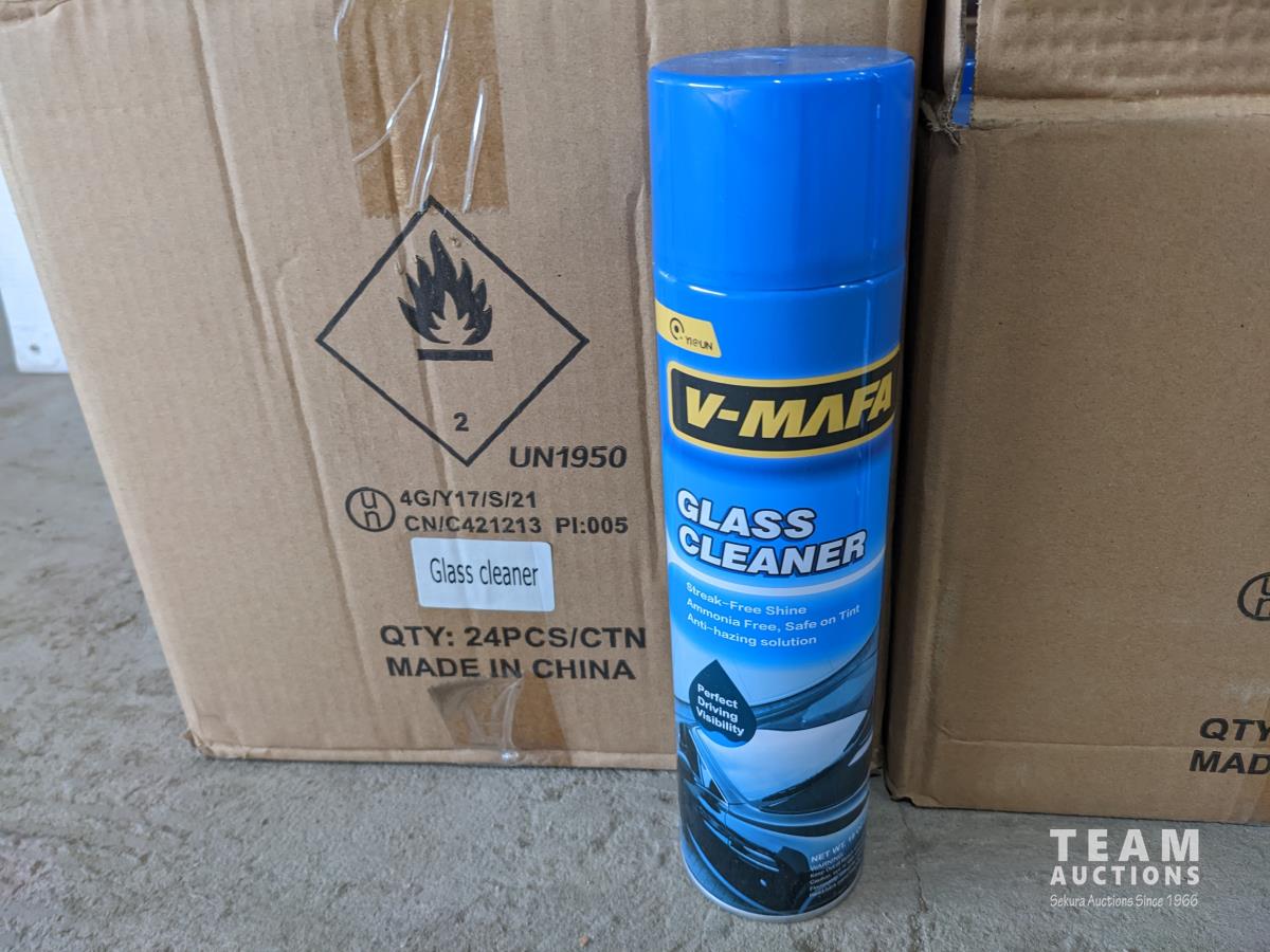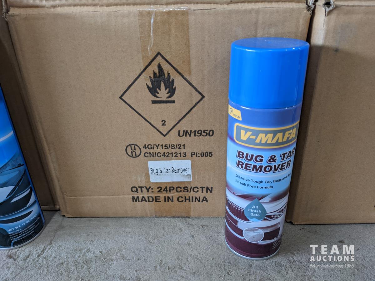 1 box of 24 cans glass cleaner, 1 box of 24 cans bug and tar cleaner, 1 box of 24 cans interior detailer, 1 box of 24 cans brake parts cleaner