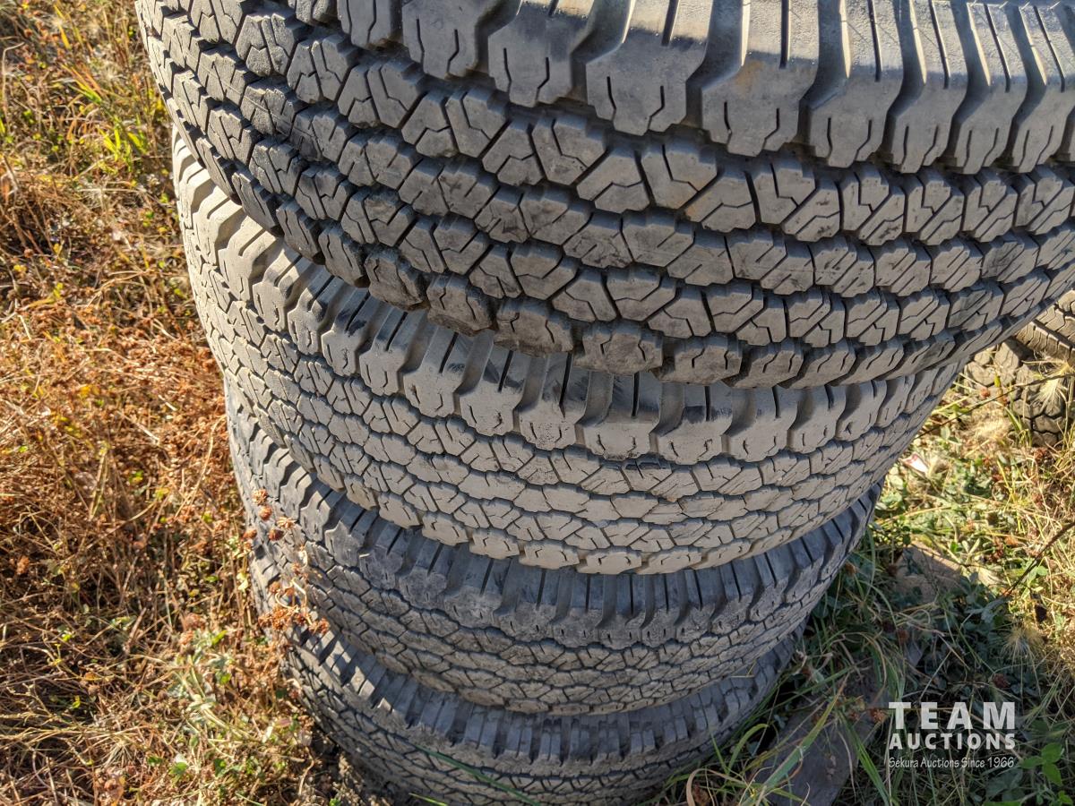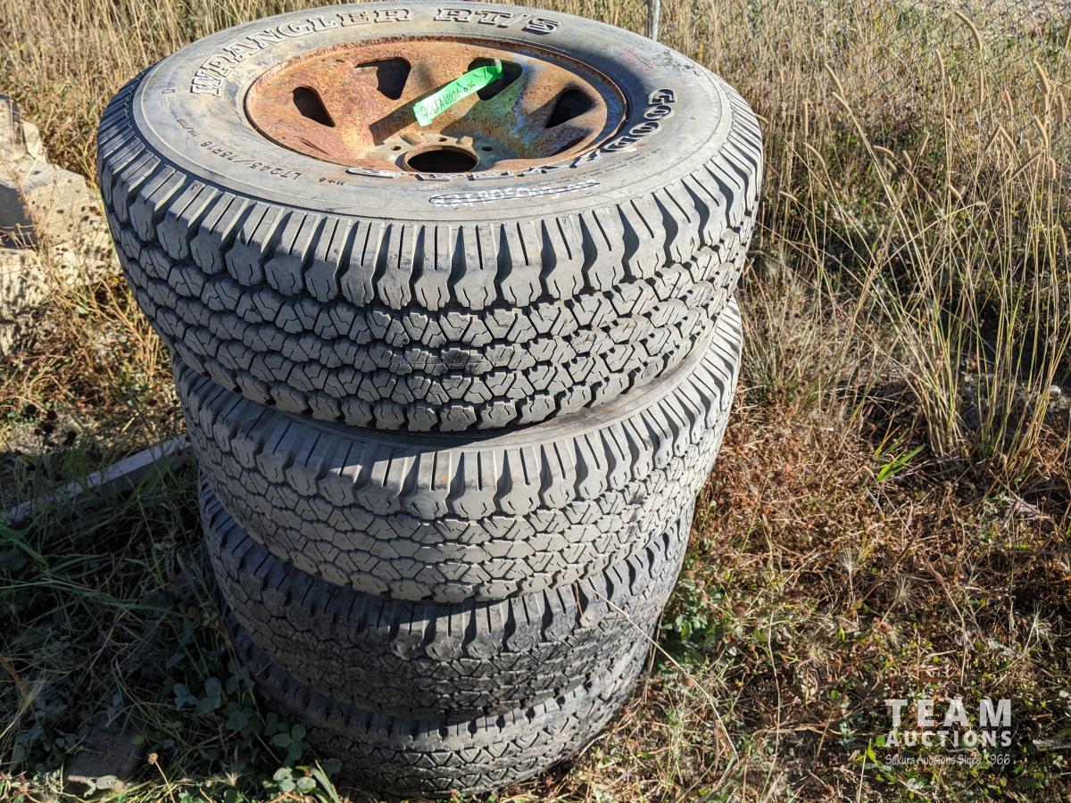 (2) Goodyear Wrangler 245/75R16 7 bolt pattern, (1) Goodyear Wrangler 245/86R16 5 bolt pattern, (1) Goodyear Wrangler 255/70R16 5 bolt pattern