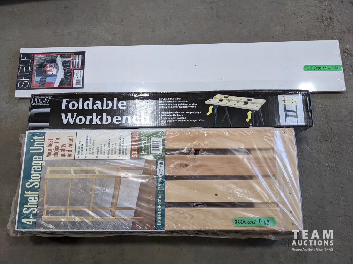 1381 (4) Storage Shelf Units, Foldable Work Bench, Shelf