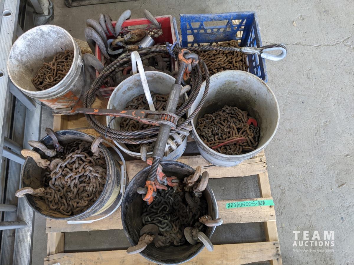 1242 (5) Buckets of Chains and Winch Hooks