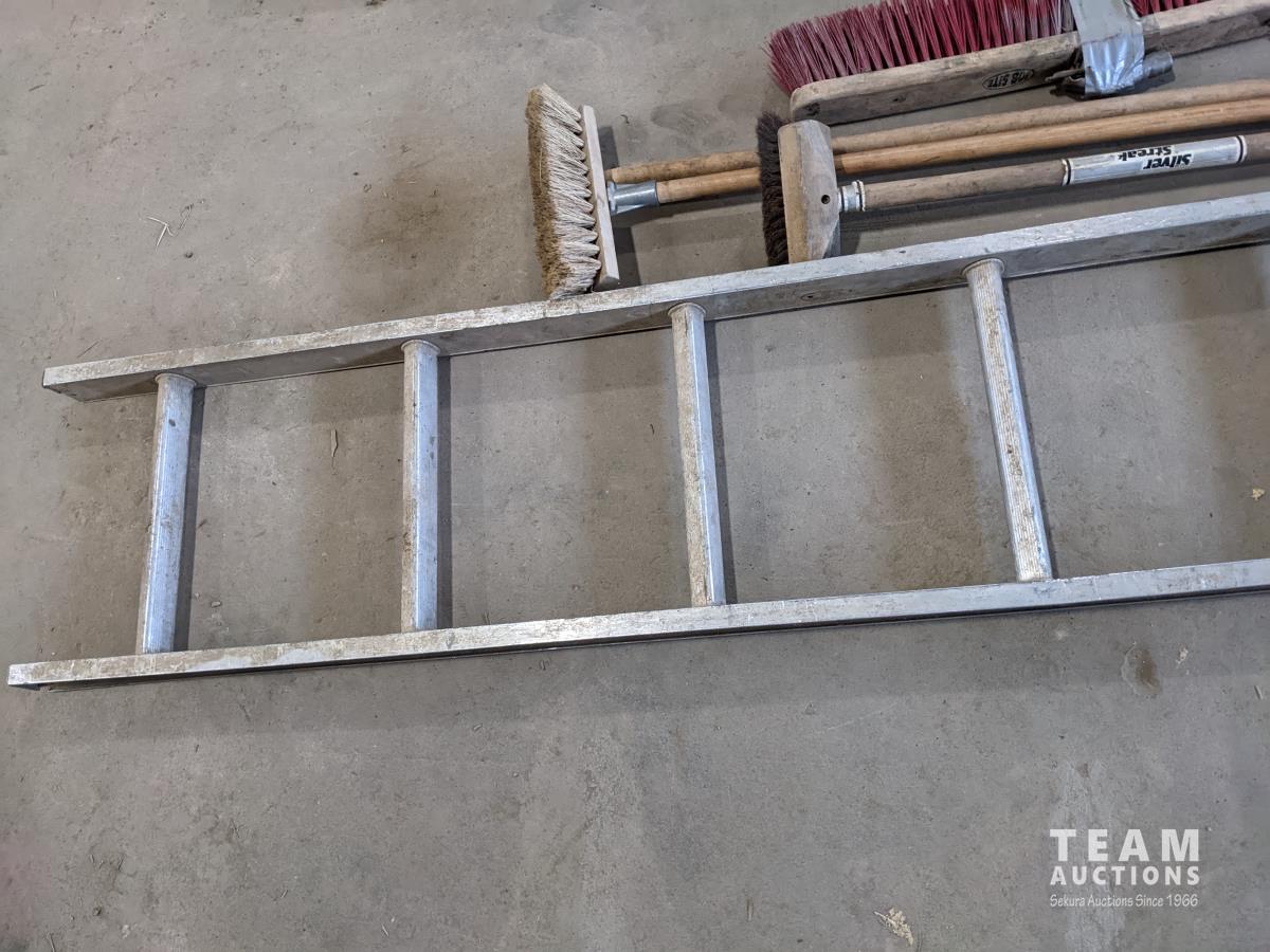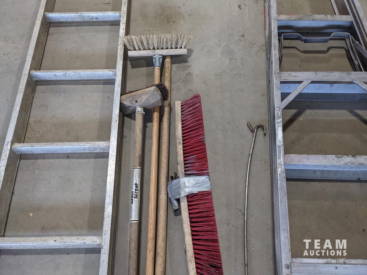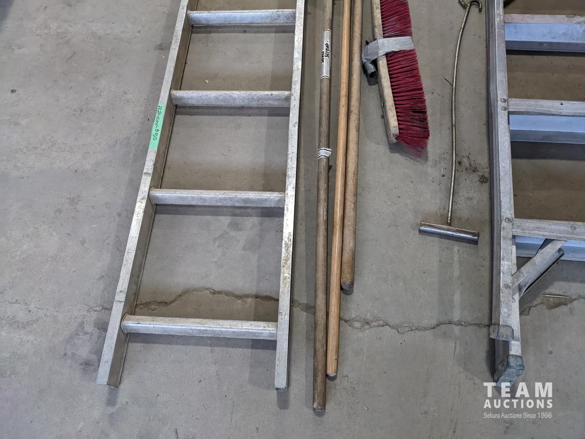 1469 7 Ft Aluminum Ladder, 6 Ft Aluminum Step Ladder, Qty of Brooms