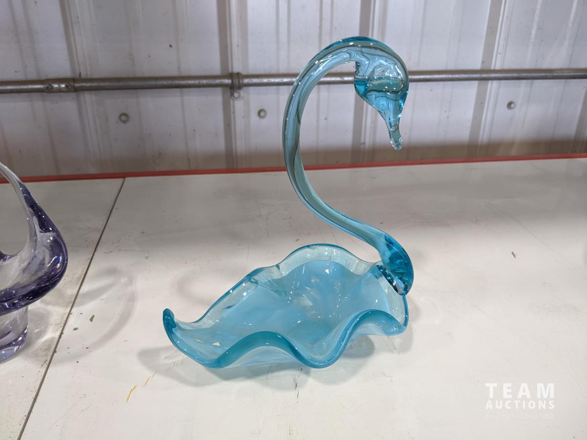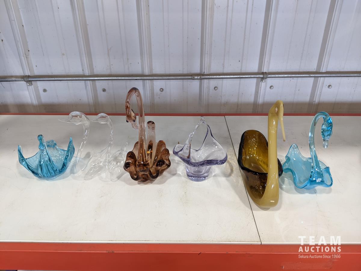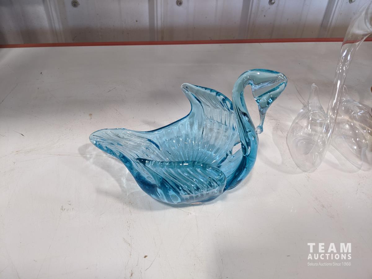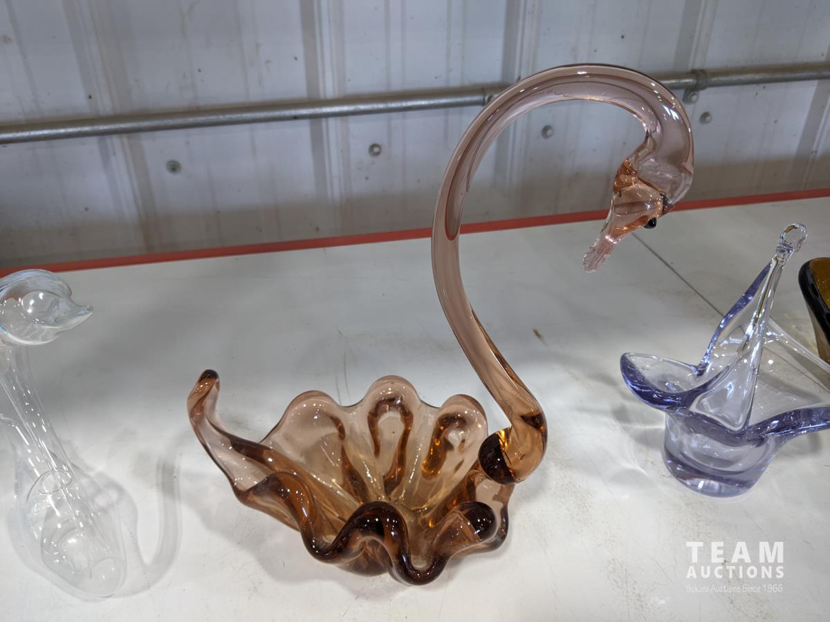 1028 (7) Glass Swans and Vase