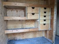 Some shelving and drawers inside, side entry door