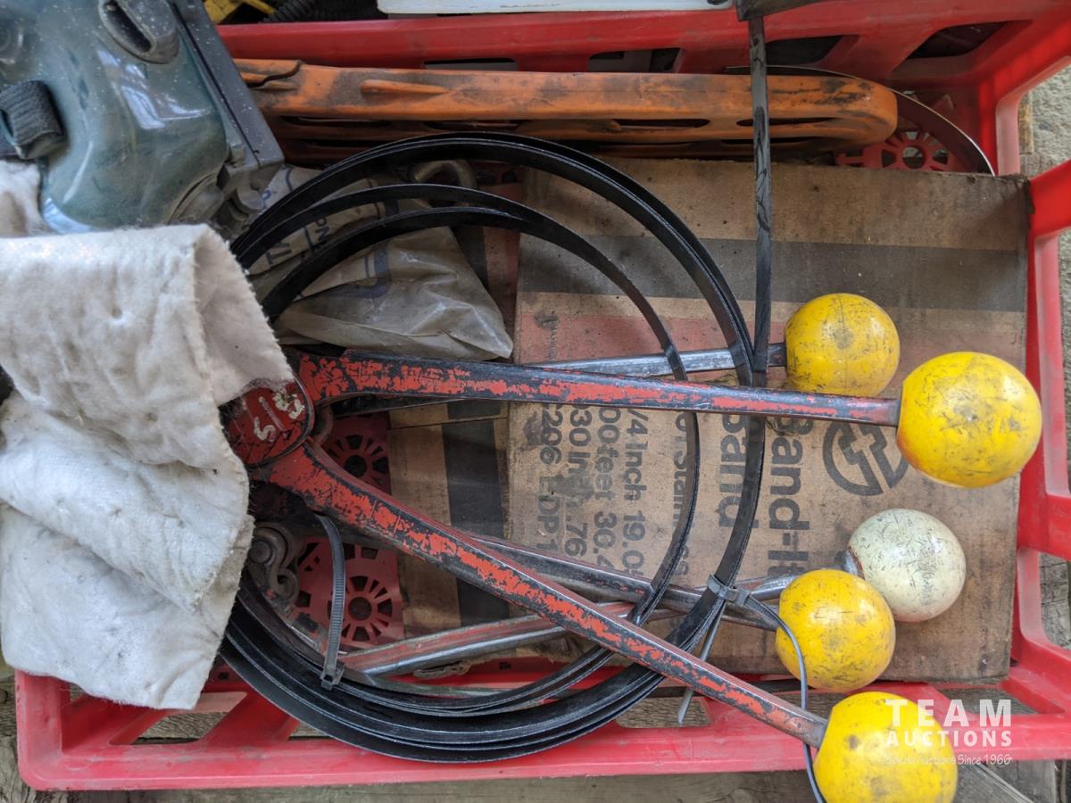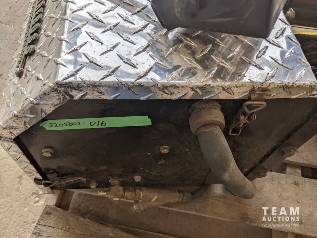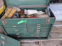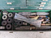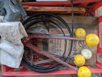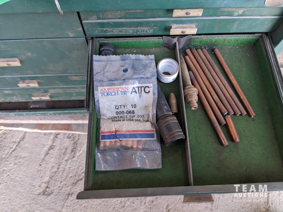 1231 Green Tool Box w/ Assorted Torch Fittings, Truck Stack, Steel Pipe, Creeper
