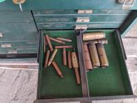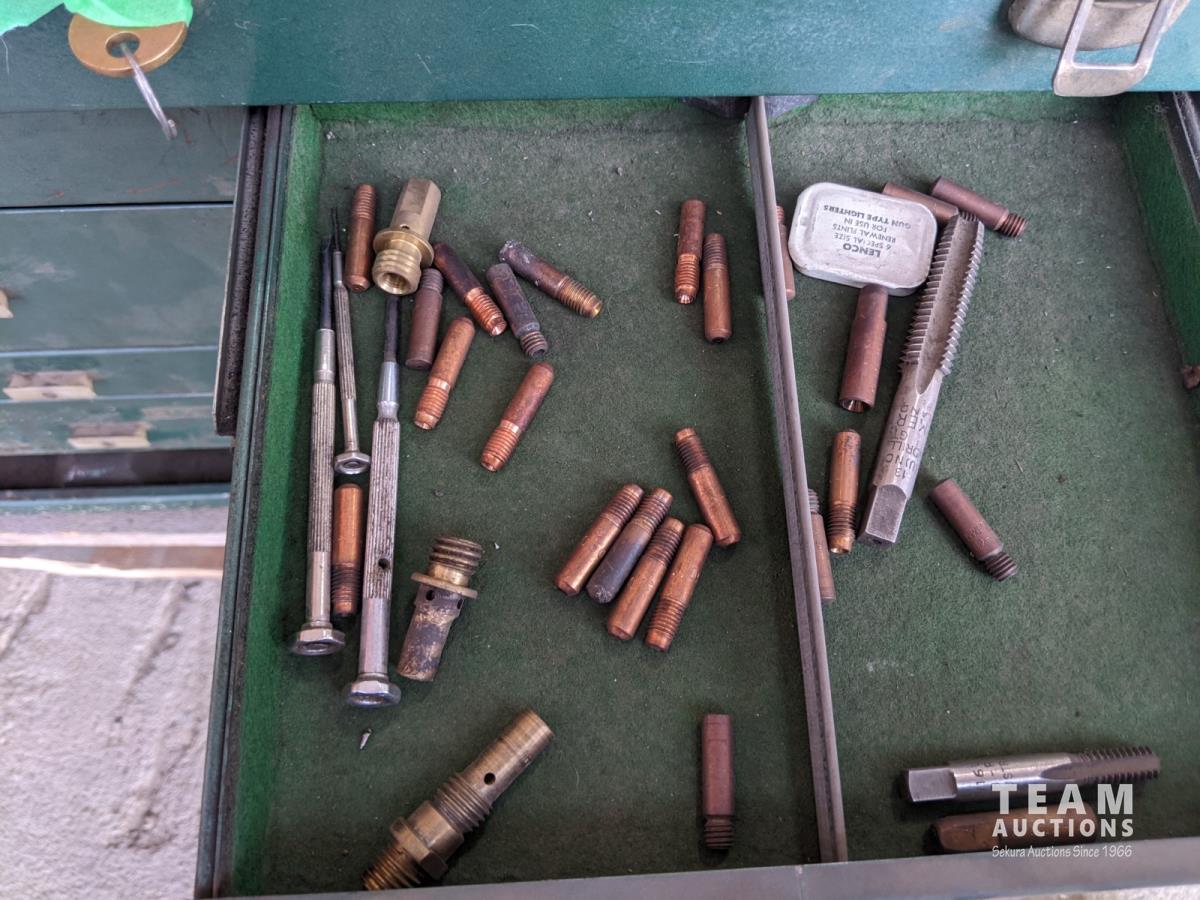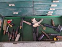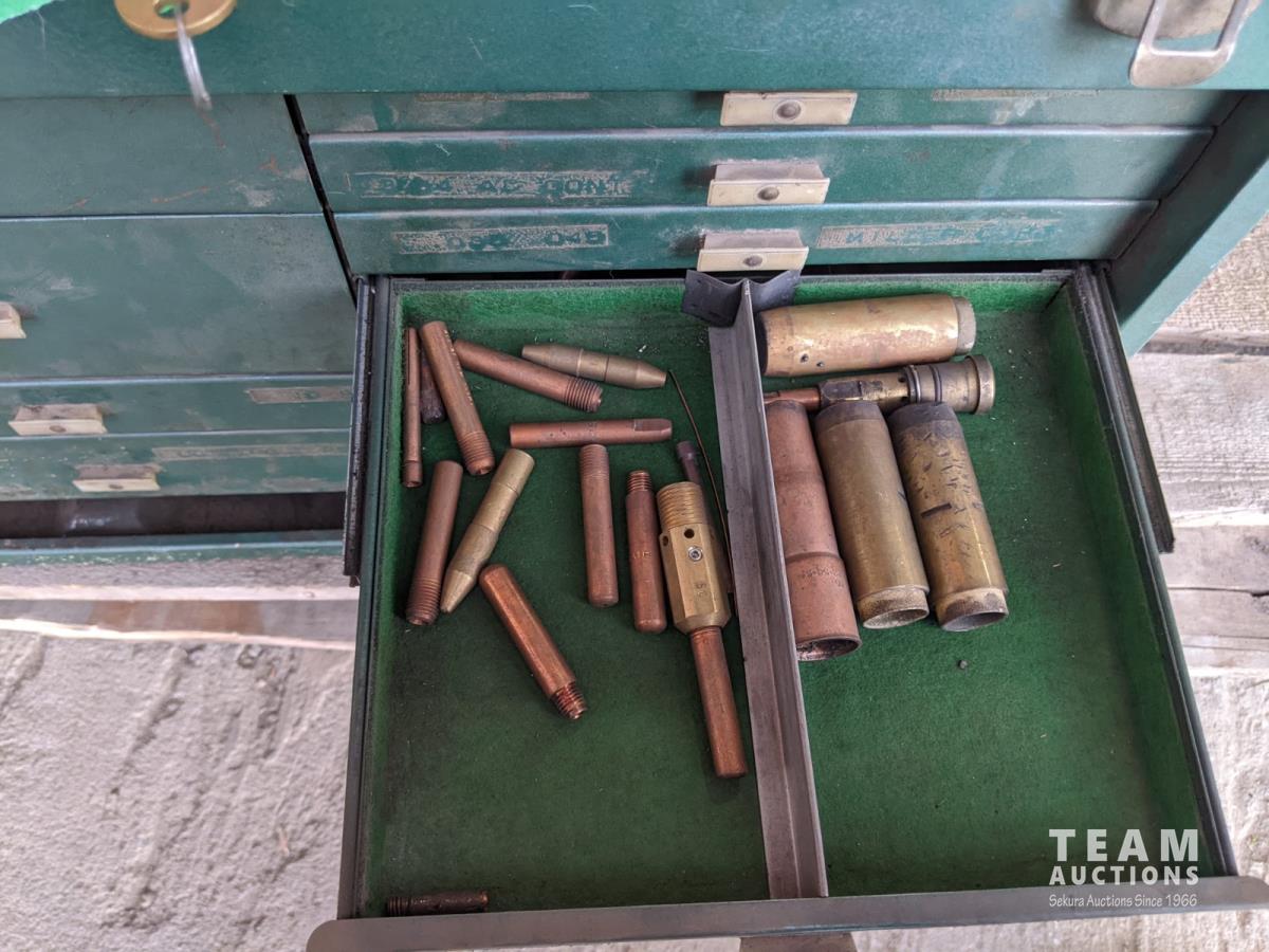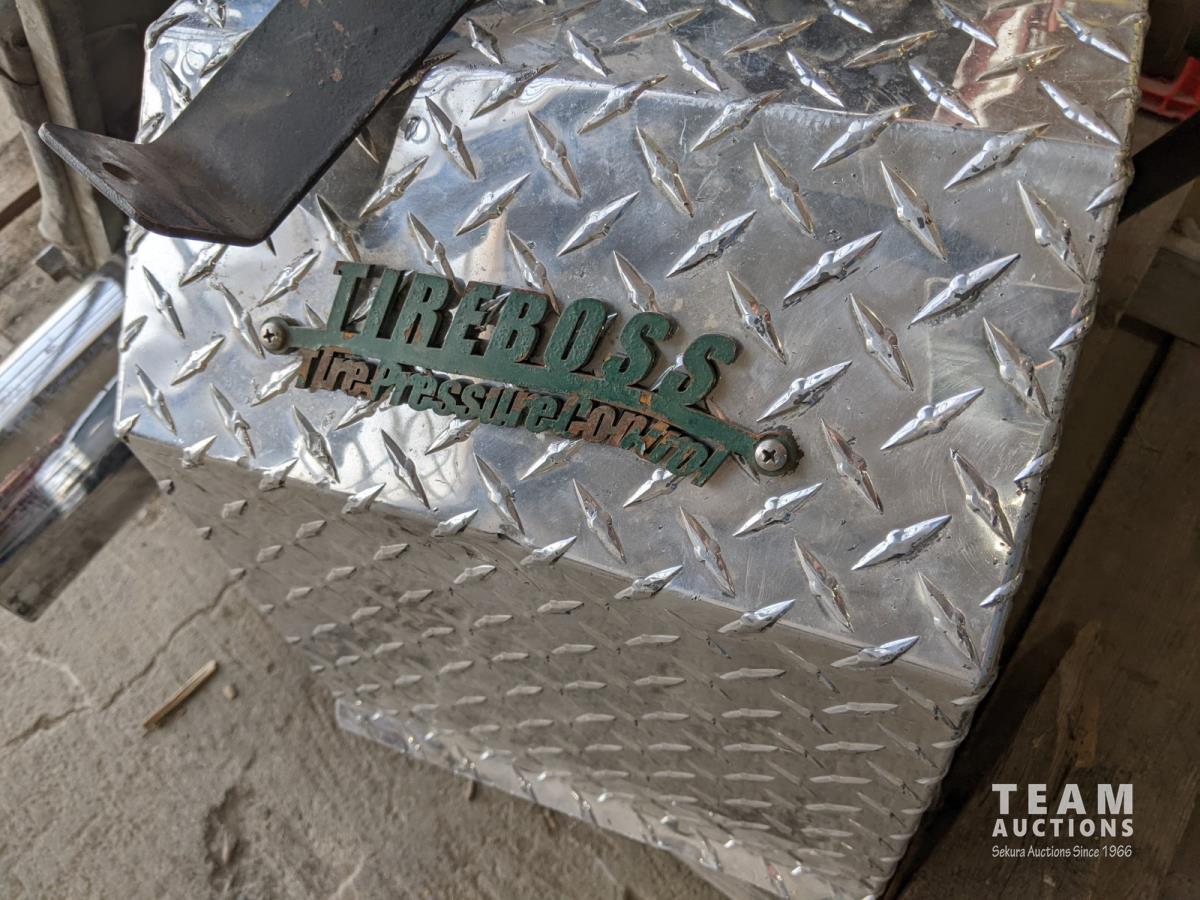 1231 Green Tool Box w/ Assorted Torch Fittings, Truck Stack, Steel Pipe, Creeper