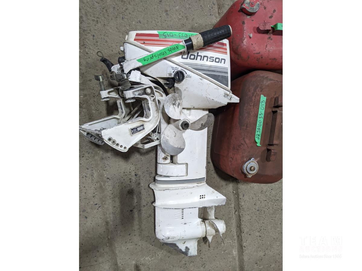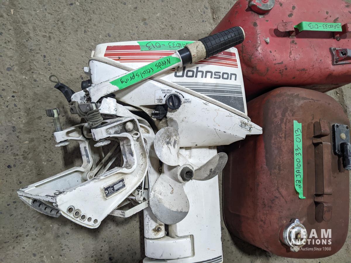 1210 Johnson 9.9 HP Outboard Motor, (2) Marine Fuel Tanks