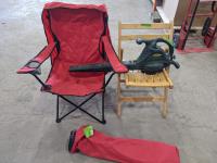 1919 Lawn Chair, Folding Chair and Leaf Blower