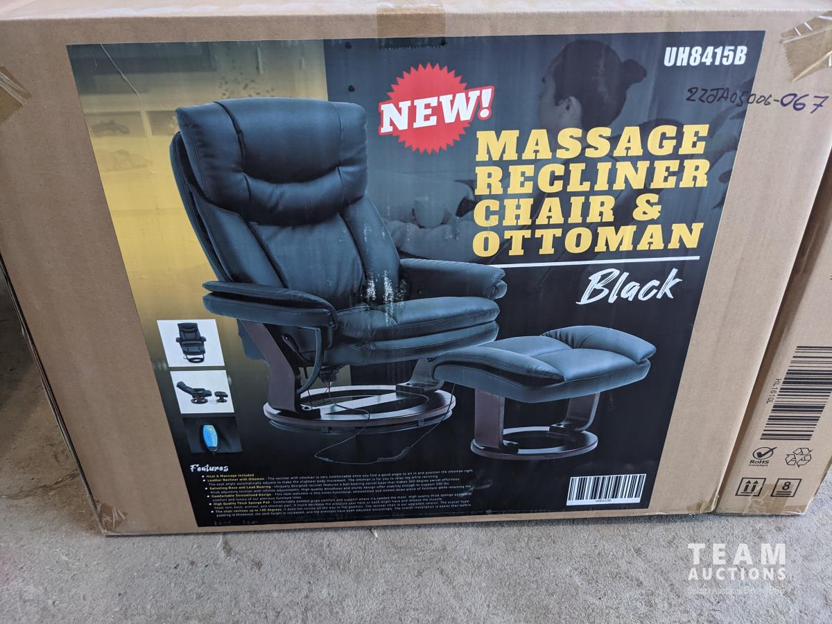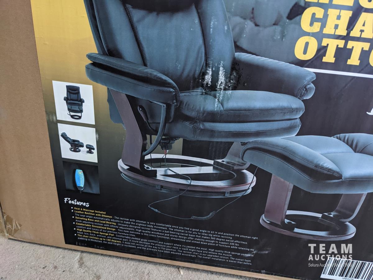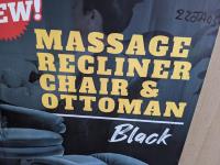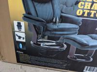 Has heat setting, swivel base, 330 lb load capacity, reclines up to 140 degrees, black faux leather