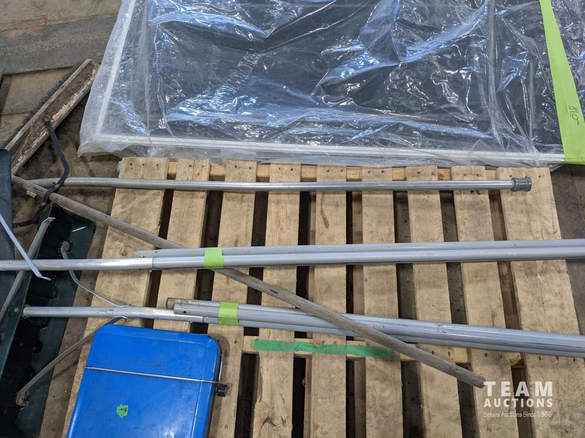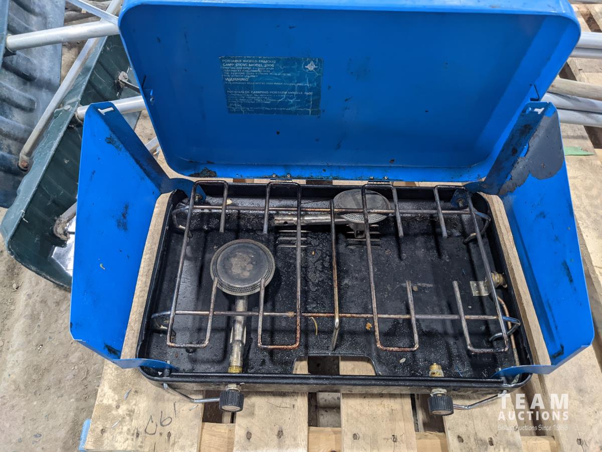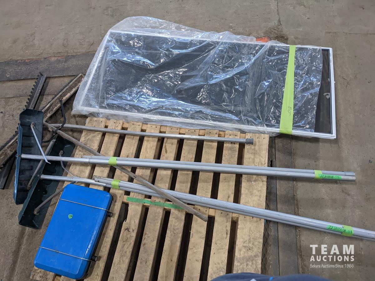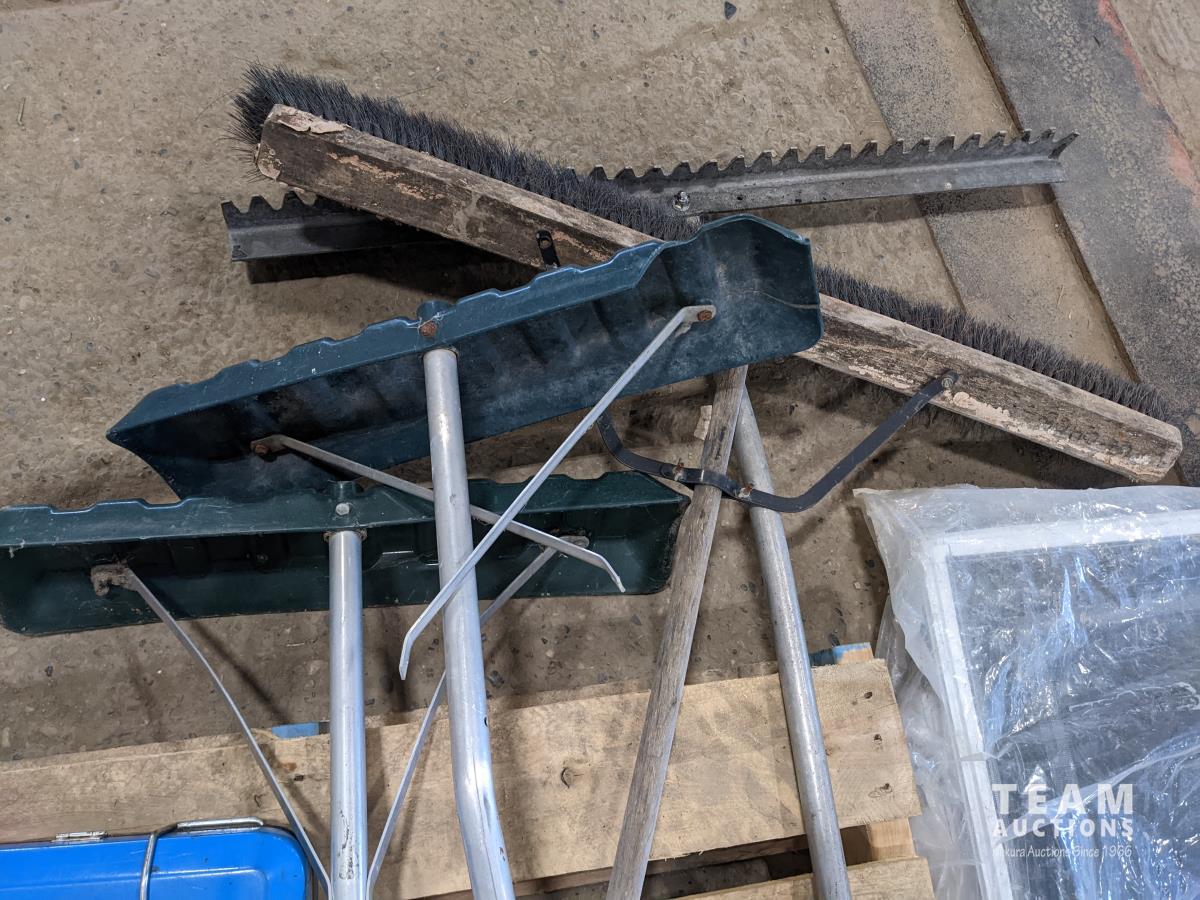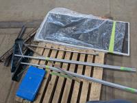 1039 Miscellaneous Screens, Roof Shovel, Broom, Camp Stove and Concrete Rake
