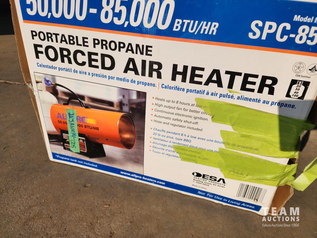 1349 Portable Pro50-85,000 BTU Propane Heater and (2) Boxes of RV Storage Tire Covers