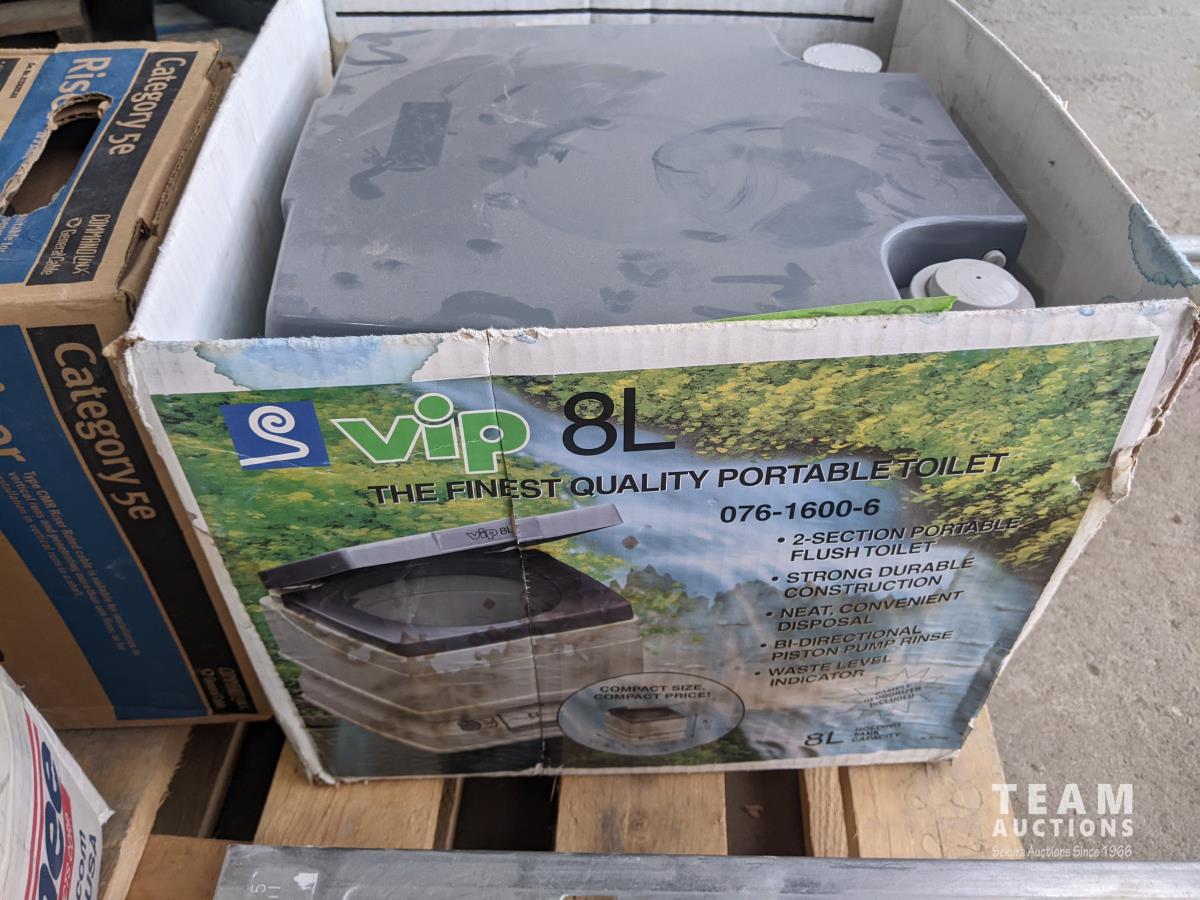 1218 Portable Toilet, (2) Boxes of Electrical Wire, Workforce Saw, Steel Pipe