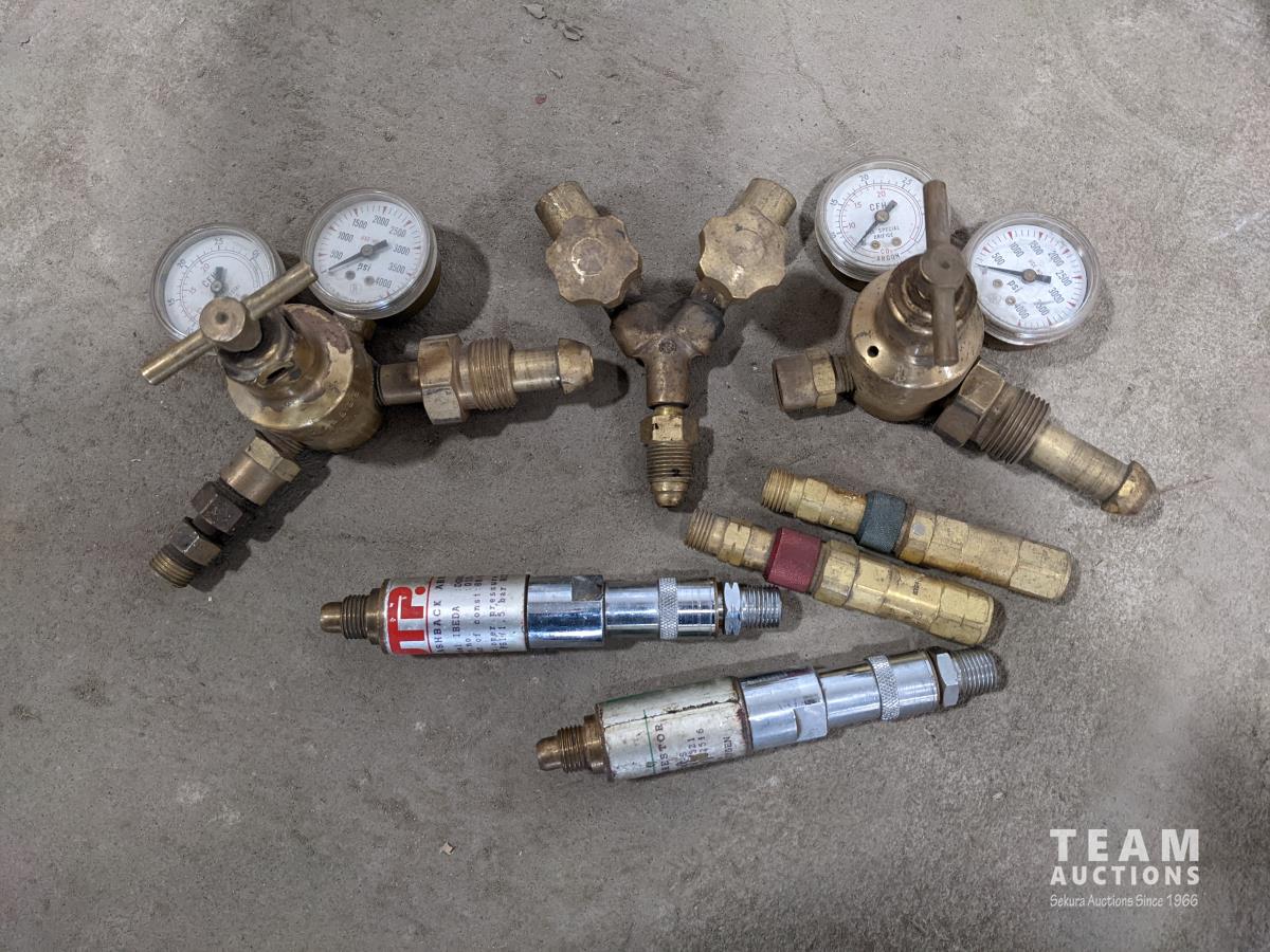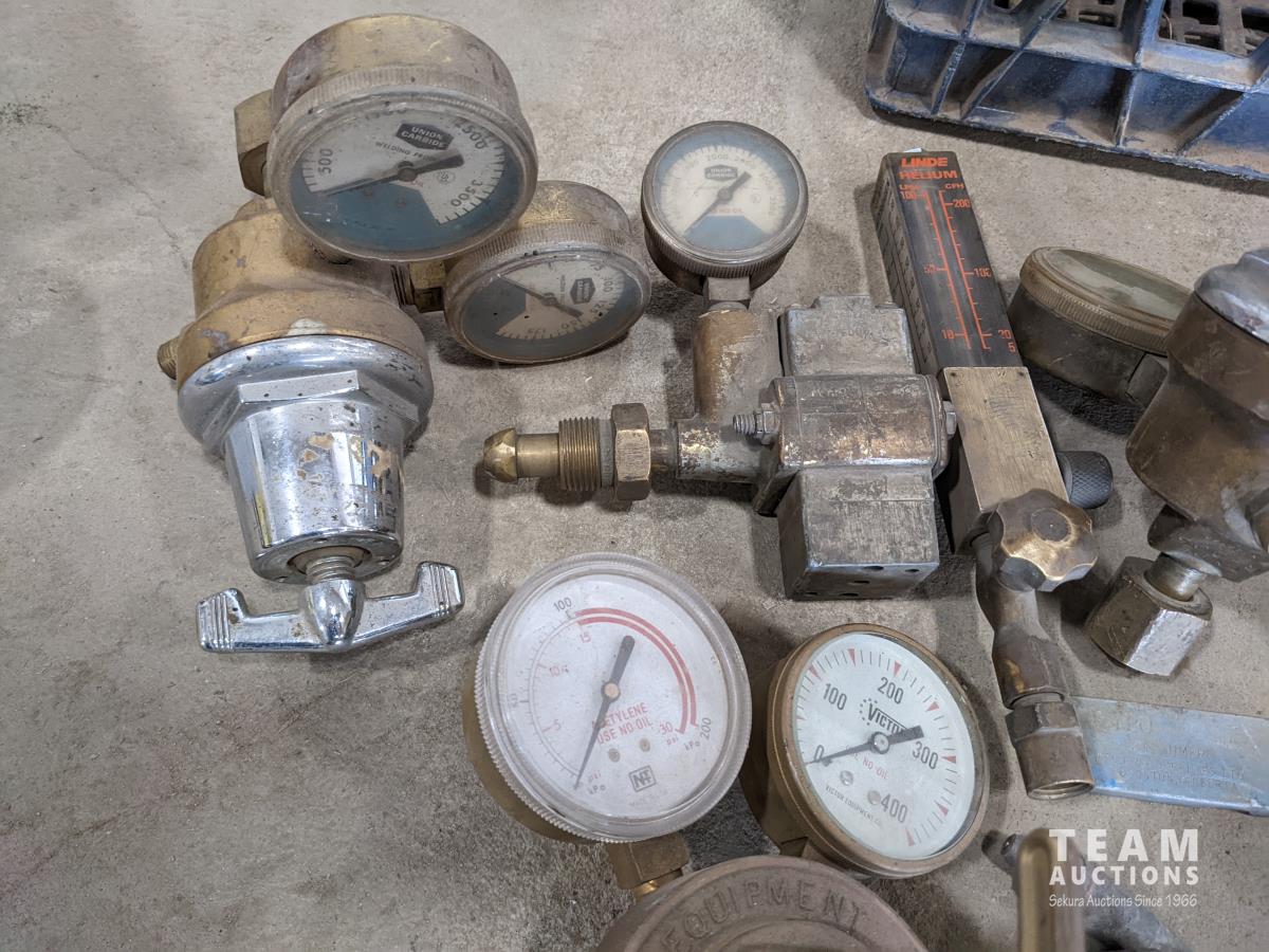 1569 Qty of Assorted Brass Torch Tips and Regulator Gauges