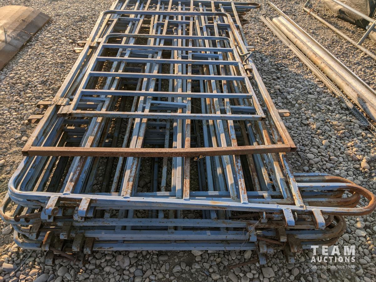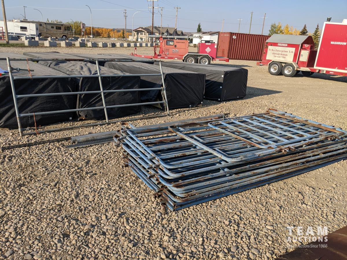 (13) 10 ft corral panels, (2) 10 ft x 3 inch gate posts, 10 ft x 48 inch swing gate, 4 ft x 7 ft panel with gate