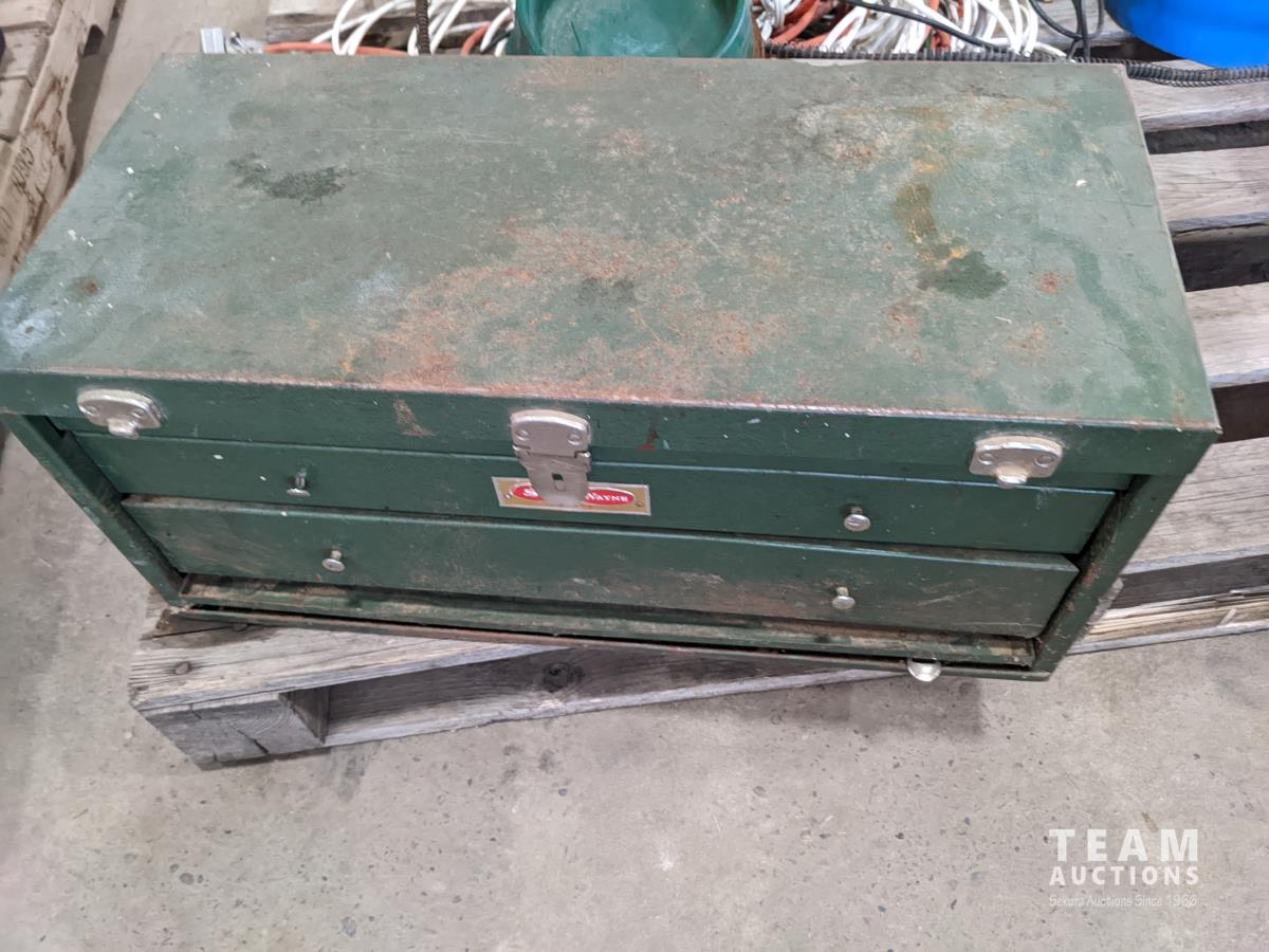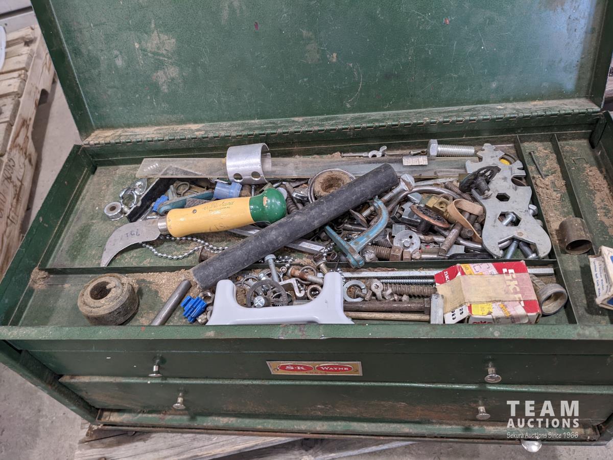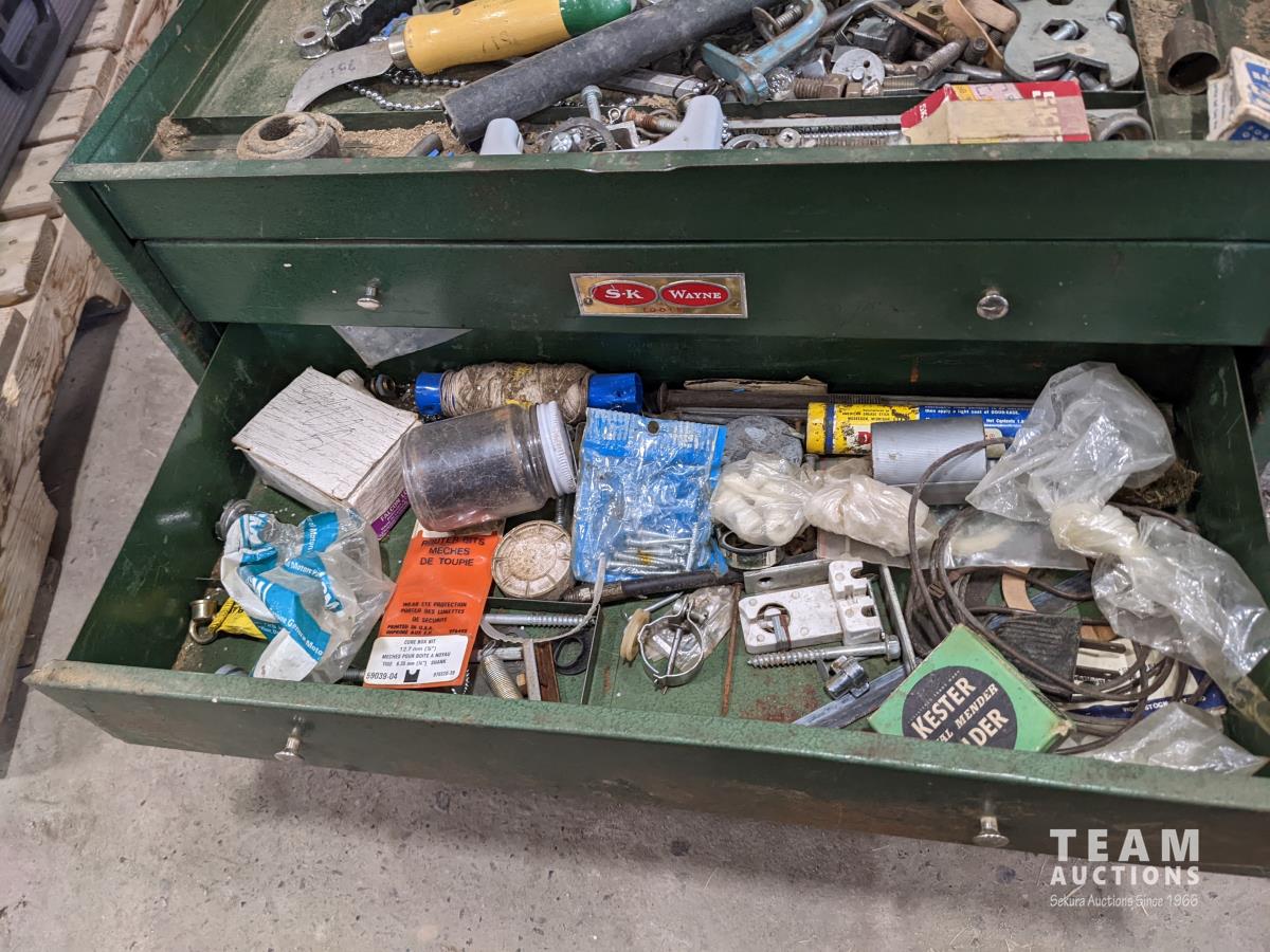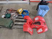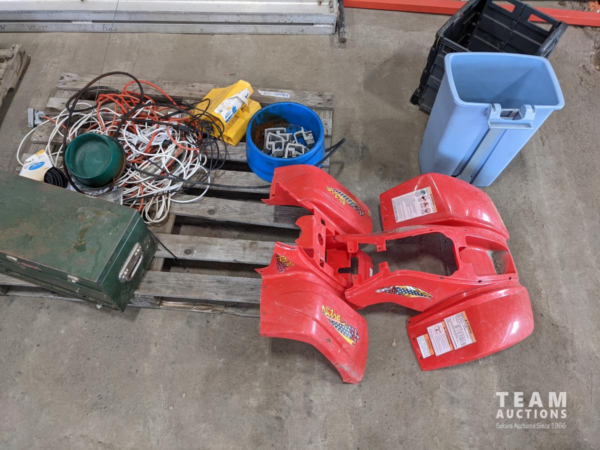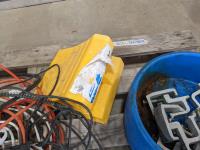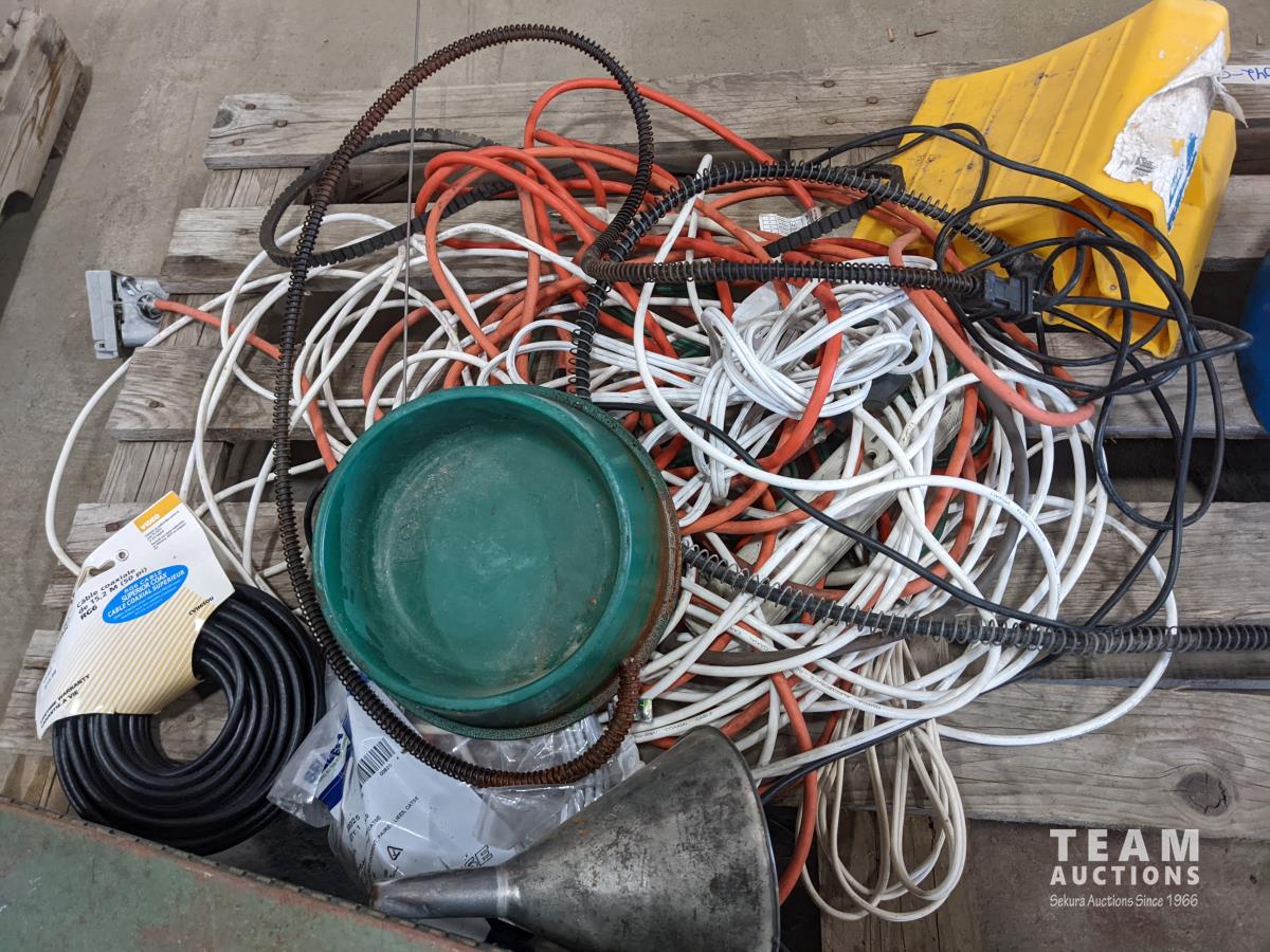 2065 Qty of Miscellaneous Extension Cords, Clamps, Heated Bowl, Tool Box w/ Tools